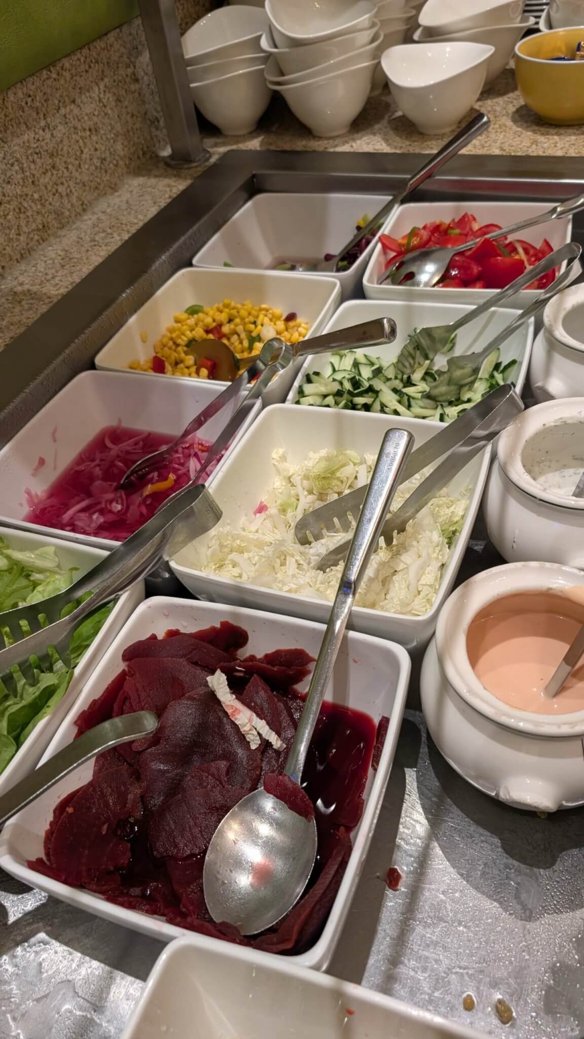 Neben Spaß und durchdachten Zimmer ist die Verpflegung ein weiterer wichtiger Pfeiler des Familienerlebnisses. Vom Frühstück über das Mittagessen bis zum Abendbuffet gab es immer eine große Auswahl an Speisen, sodass wirklich alle fündig werden. Bei uns war die Auslastung des Hotels so hoch, dass es bei jeder Mahlzeit ein Buffet gab – wenn weniger los ist, gibt es servierte Speisen. Großer Pluspunkt: Es gab auch etwas für die ganz Kleinen (Marken-Babybrei, passendes Geschirr und eine Mikrowelle). Einziges Manko: Hier hätte ich mir auch ein Stockerl, wie auf den Zimmern gewünscht, sodass unsere Kleine selbst sehen kann, was es gibt.
