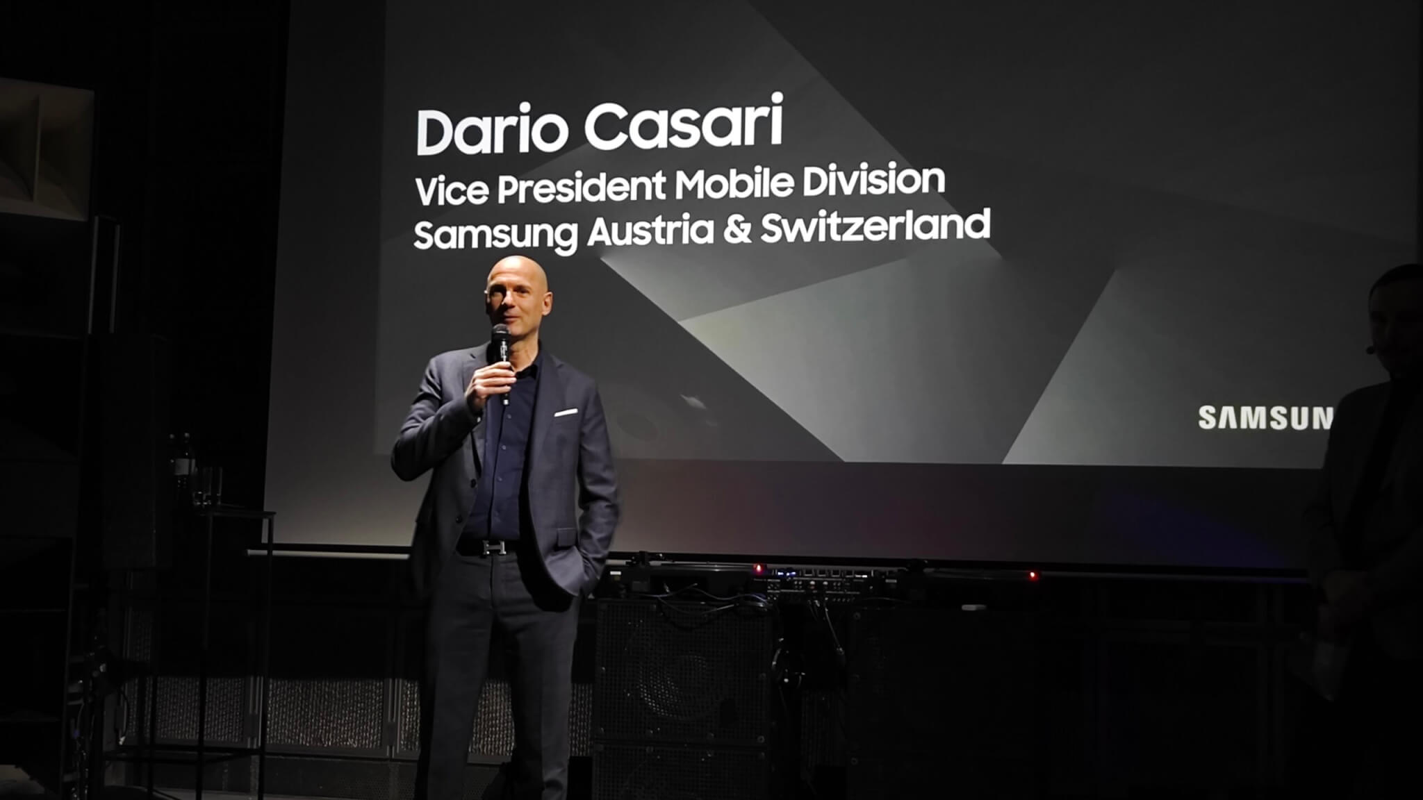Samsungs Vice President der Mobile Division für Österreich und Schweiz Dario Casari, hieß die 200 Gäste:innen willkommen. Marvin Peters, Director Mobile Samsung Austria, präsentierte die neuesten AI-Features des Smartphones in den Bereichen Live-Übersetzung, Nightography sowie neue AI-Bild-Bearbeitungstools und Bild-Suchfunktionen, wie „Circle to Search“, welches in Kooperation mit Google entstanden ist. Dabei diskutierte er mit dem AI-Experten und Vangardist CEO, Julian Wiehl, über die neuesten AI-Trends und die Veränderungen, welche künstliche Intelligenz 2024 mit sich bringen wird.