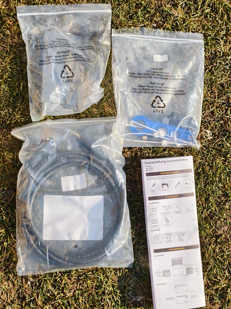 Die Inbetriebnahme der Basiseinheit gelingt auch technisch unbewandertern Käufer:innen problemlos. Der begliegende Installations-Guide erklärt die einzelnen Schritt mittels Bildern und kurzen Texten. Alles sehr verständlich und klar. Hauptspeicher und Erweiterungensakkus zusammenstecken und verbinden, Panele anschließen, Antenne anschrauben, Kabel mit einer Steckdose verbinden und die restlichen Einstellungen in der App vornehmen.