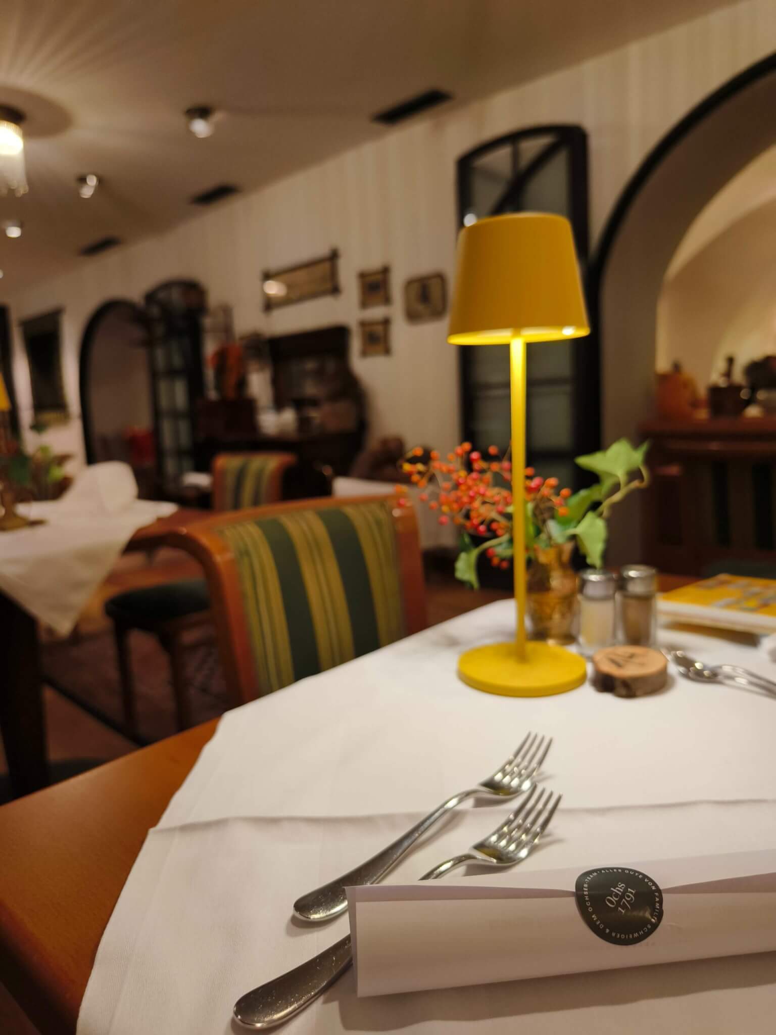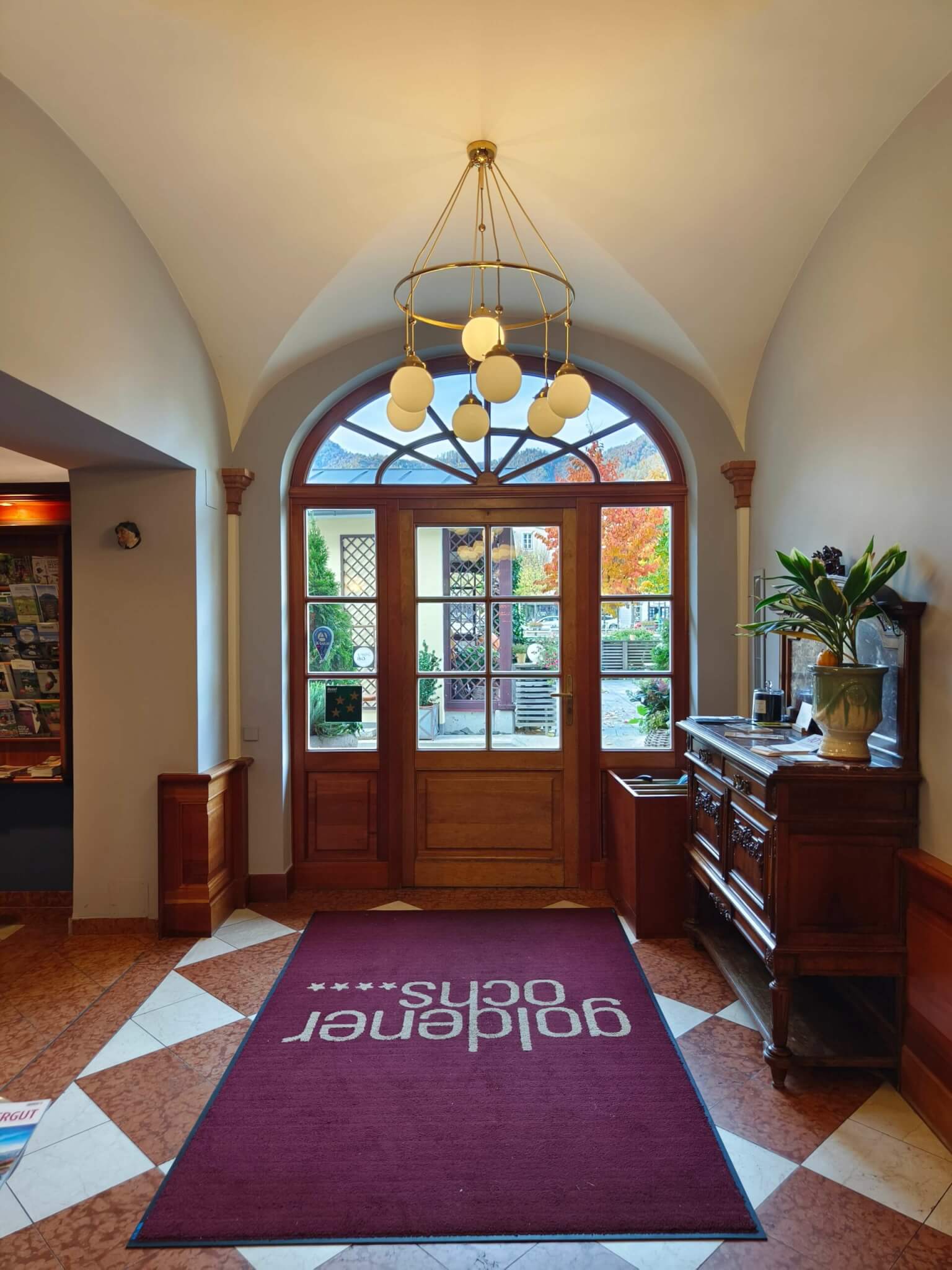 Den traditionsreichen Eingang des Hotels passiert, lächelt die Rezeptionsmitarbeiterin uns freundlich an und erklärt alles, was wir über das Hotel wissen müssen (wo das Zimmer ist, wo es das Frühstück gibt, wo der Wellnessbereich ist und wo wir parken können). Letztgenanntes ist für mich das einzige Manko des Ortes. Es gibt nur großflächige Parkanlagen, deren Betreiber sich ein gutes Geld mit Tourist:innen verdienen. Denn neben Stunden- und Tagestickets gibt es nur noch Monatstickets. Tipp: Wenn ihr im Hotel Goldener Ochs residieren wollt, fragt, ob es in der hoteleigenen Garage einen Platz gibt.