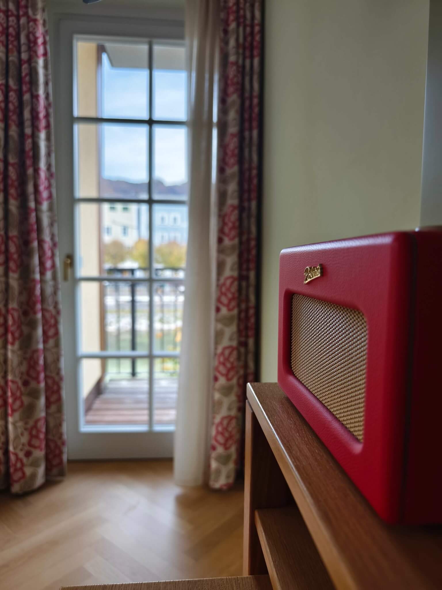 Im Zimmer ist alles vorhanden, was man sich von einem 4*-Hotel erwartet und noch mehr. Angefangen von Basics wie einem Kühlschrank, Safe, Wasserkocher, Föhn über kleine Accessoires, einem Roberts Radio, stilvollen Bildern und einem modernen Einrichtungsstil, der perfekt mit klassischen Elementen wie zum Beispiel der französisch anmutenden Veranda verschmilzt.