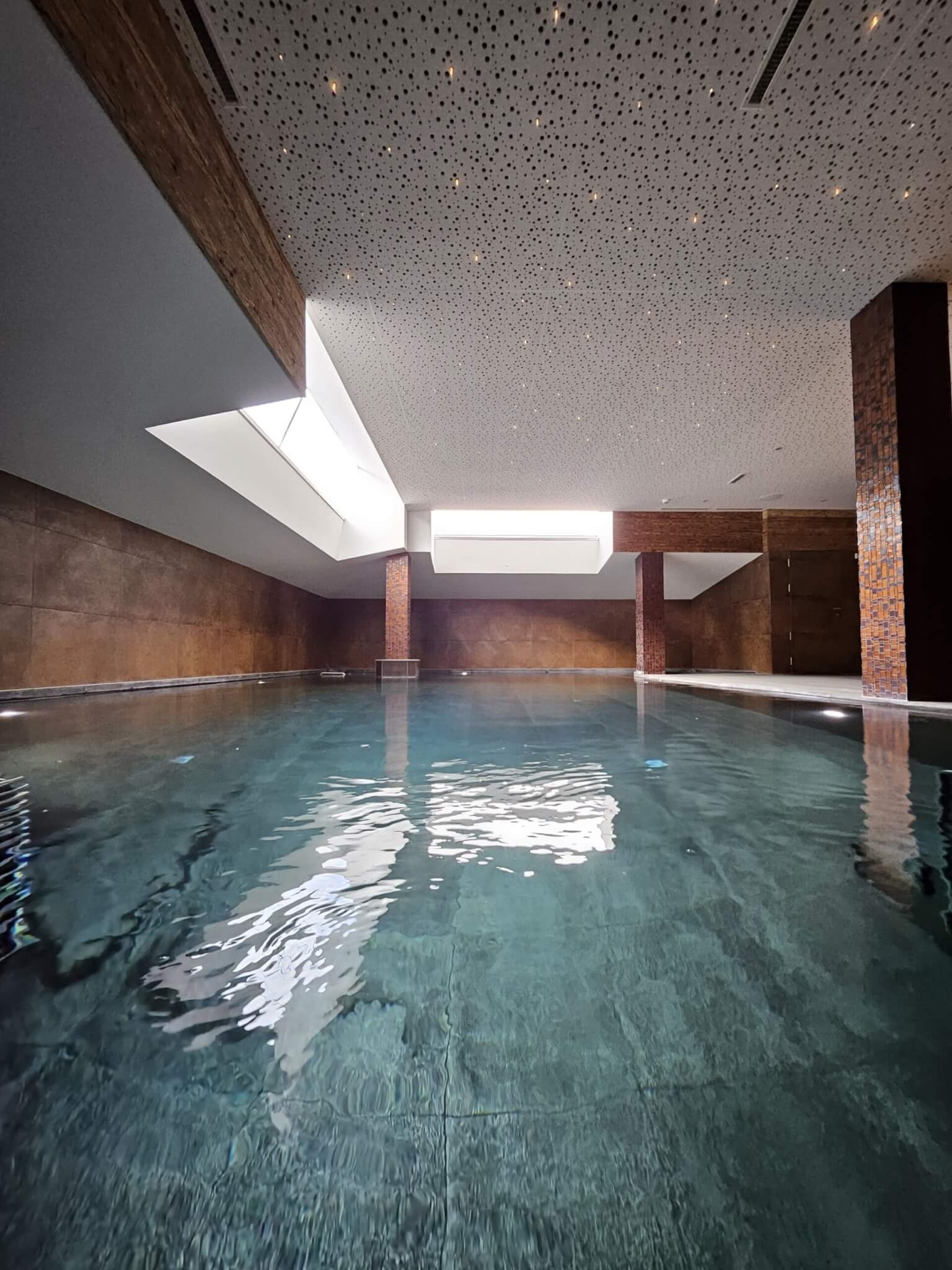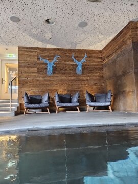 - Indoor-Pool: Das sanfte Plätschern während man im Indoor Pool schwimmt wirkt wie ein Metronom der Entschleunigung. Man gleitet durch das Wasser, die Schwerelosigkeit genießend, oder man entspannt mit dem sprudelnden Jacuzzi Bereich.