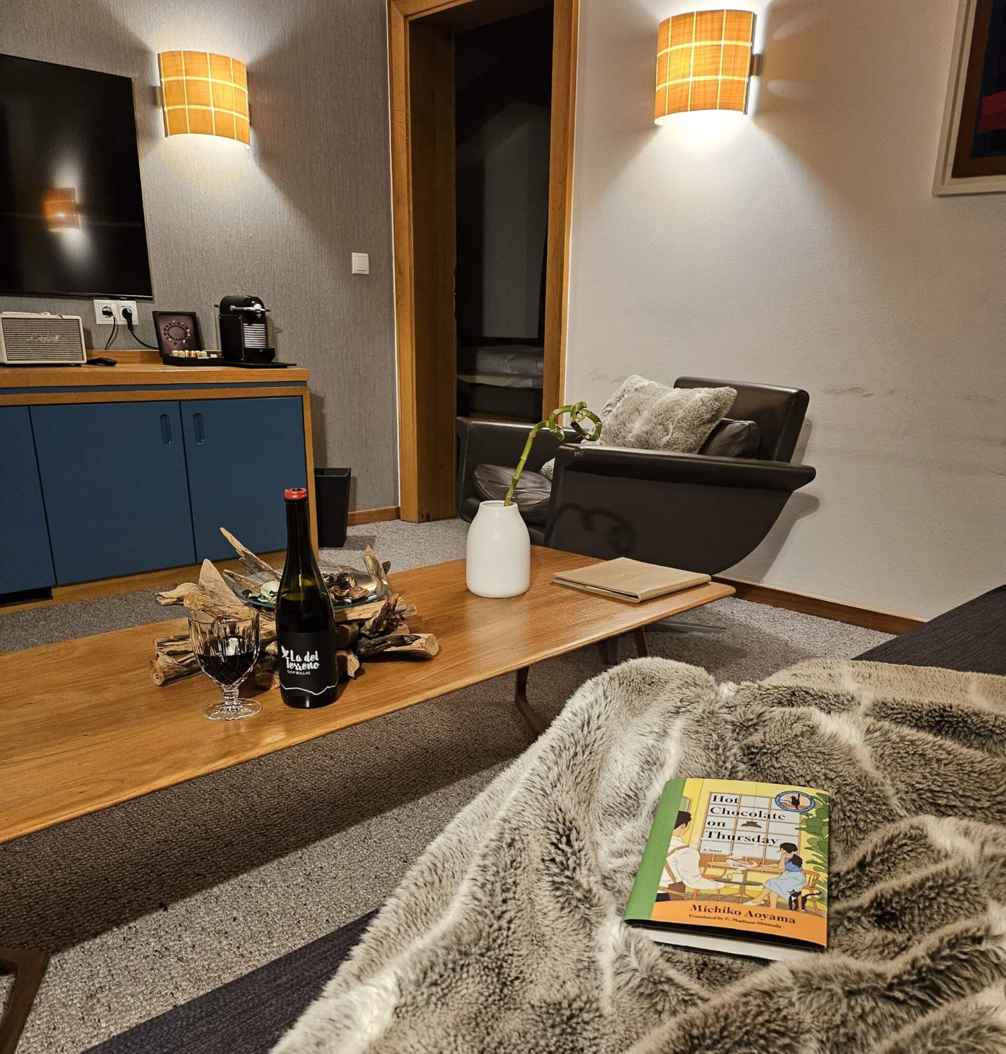 Das 60m² große Appartment bietet ebenso viel Privatsphäre wie Wohngefühl. Ideal für Freunde, die gemeinsam reisen, oder für Familien, die Raum schätzen. Der getrennte Wohn- und Schlafbereich ist perfekt, um sich auch mal zurückzuziehen oder abends gemütlich auf dem Sofa gemeinsam Zeit zu verbringen. Die Ausstattung ist hochwertig, ohne laut zu sein. Sie lässt keine Wünsche offen und unterstreicht den erstklassigen Standard der Suite. Von der morgendlichen Nespresso-Kapsel bis zum erstklassigen Sound der Bluetooth-Lautsprecher – ergänzt durch Smart-TV und schnelles WLAN ist alles vorhanden, um deinen Aufenthalt absolut wunschlos glücklich zu machen. Alles ist da, was man braucht.