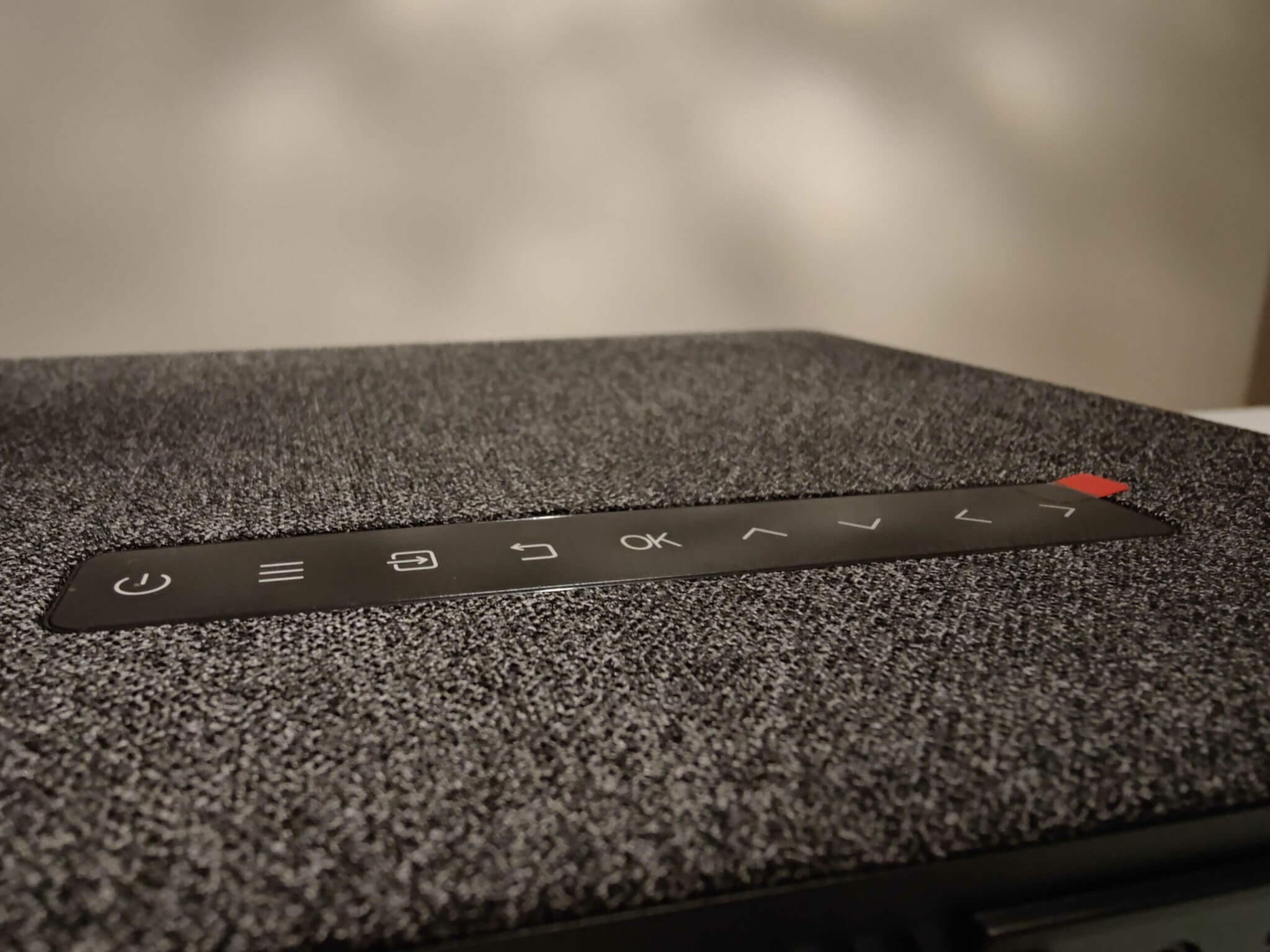 Mit den auf der Oberseite verbauten Bedienelementen könnt ihr sämtliche Funktionen des Beamers nutzen – ganz egal, ob es es das Auswählen des Inputkanals oder das Verändern von Einstellungen ist. Der obligatorisches Ein-/Ausschaltknopf ist ebenfalls dort leicht erreichbar platziert. Dass das Stromkabel auf der rechten Seite angesteckt wird, ist etwas unüblich und für manche vielleicht ein Nachteil, aber bei meinem Test war dieser Umstand nicht störend. Etwas mehr gestört hat mich das relativ kurze Stromkabel mit einer Länge von 1,5 Metern. Dies ist ohne Verlängerungskabel gar nicht so einfach ohne Stolperfallenszenario zu verlegen.