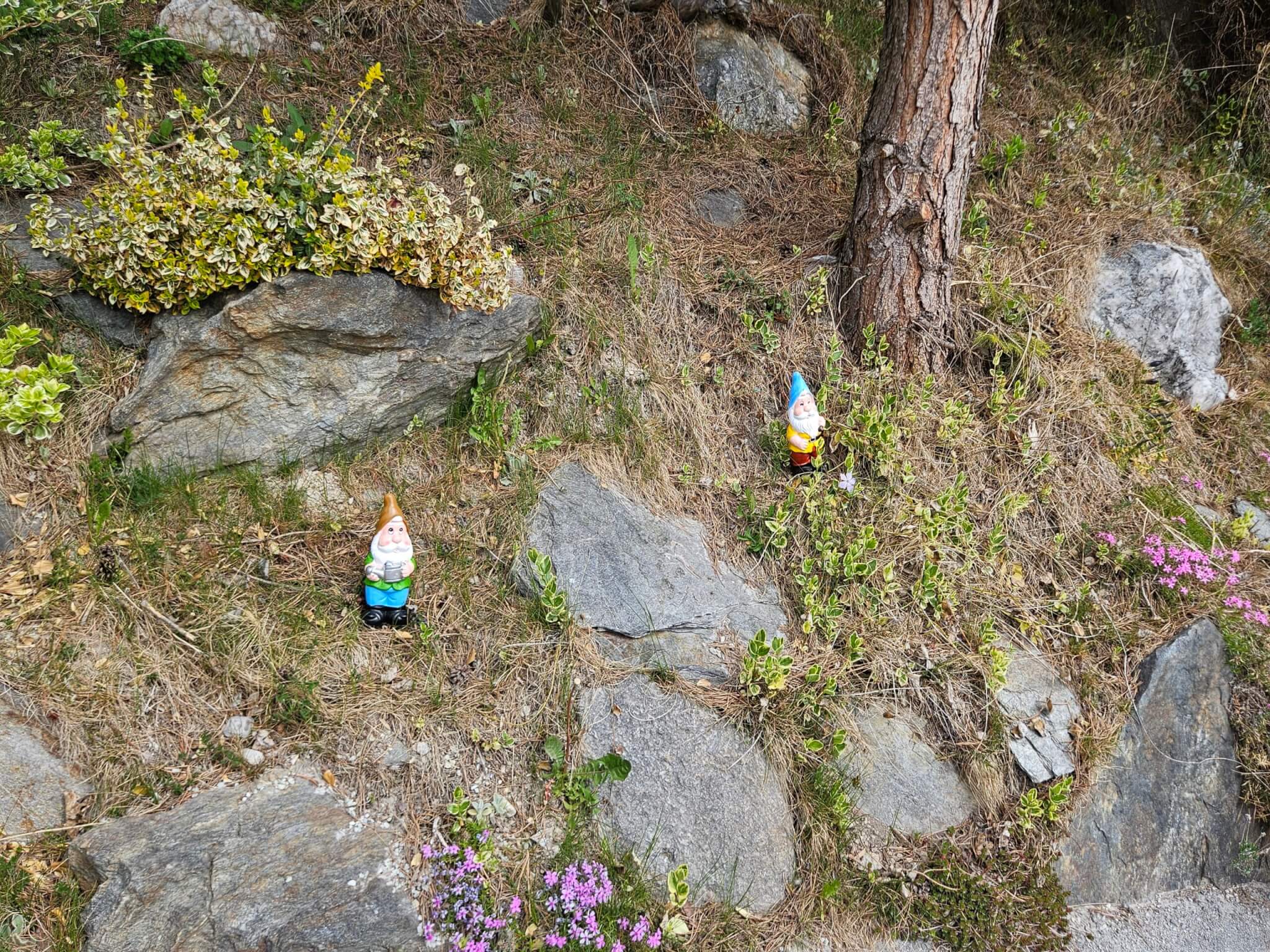 Schon beim Ausgang des Hotels, sieht man sie: Die kleinen Zwerge, denen man in den Wald folgen muss, um zum Zwergerlwald zu kommen, der zum Hotel dazugehört.