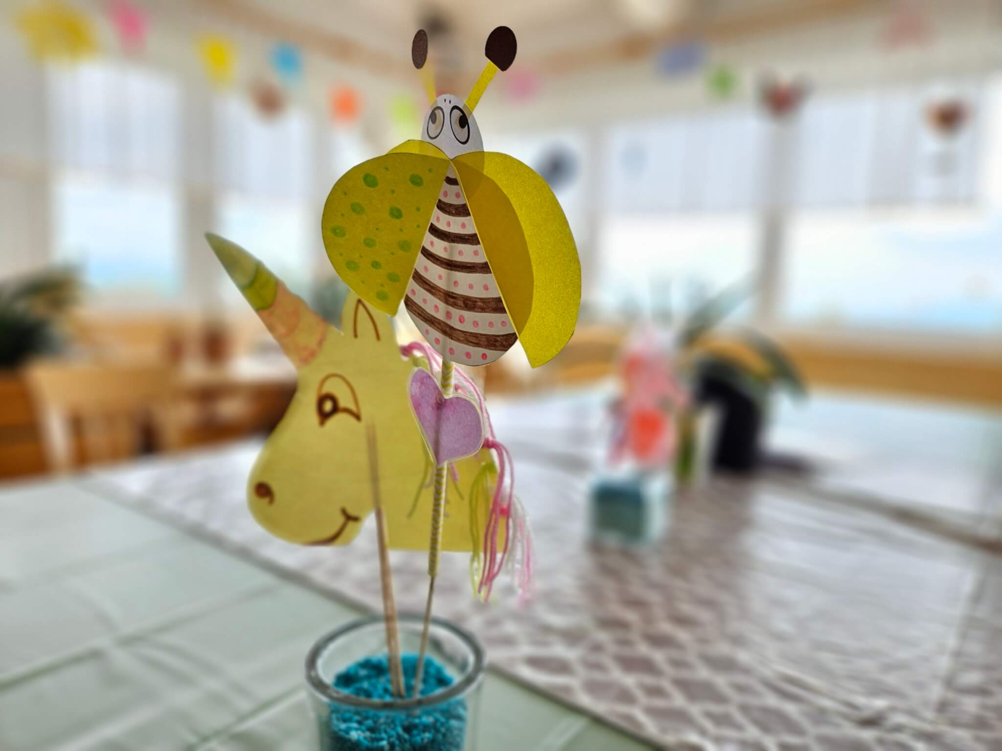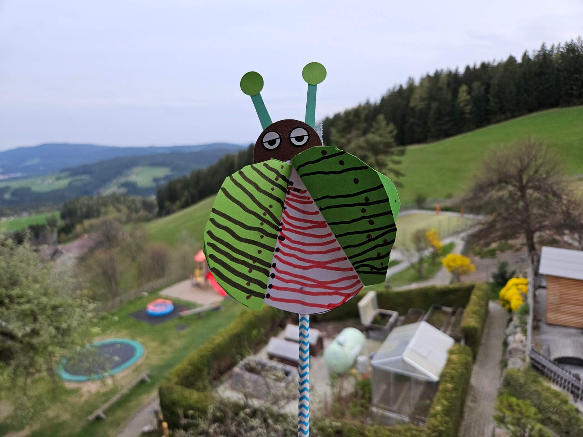 Aber wie bereits erwähnt hatten wir für all das noch keine Zeit, denn wir waren im Wellnessbereich (dazu die Tage mehr) und durften an einer Bastelstunde teilnehmen. Zwei bis drei Mal am Tag, gibt es eine einstündige Bastelstunde für die Kinder. Heute gab es unter anderem Giraffen, Einhörner und Marienkäferchen zu basteln. Morgen vor dem Mittagessen werden sogar Stoffbeutel bemalt. Mein Sohn hat sich für den Käfer entschieden, der in der Spielecke gemacht wird, wo die Kinder nach dem Essen hinschauen dürfen und die Eltern ungestört ihr Essen fertig essen können. Unter geduldiger und sehr netter Anleitung war der süße Käfer bald fertig gebastelt. Man merkt auch hier wieder, dass man sich sehr viel Zeit für die Kleinen nimmt und mit viel Fantasie und Kreativität die Kinder bestens unterhält.