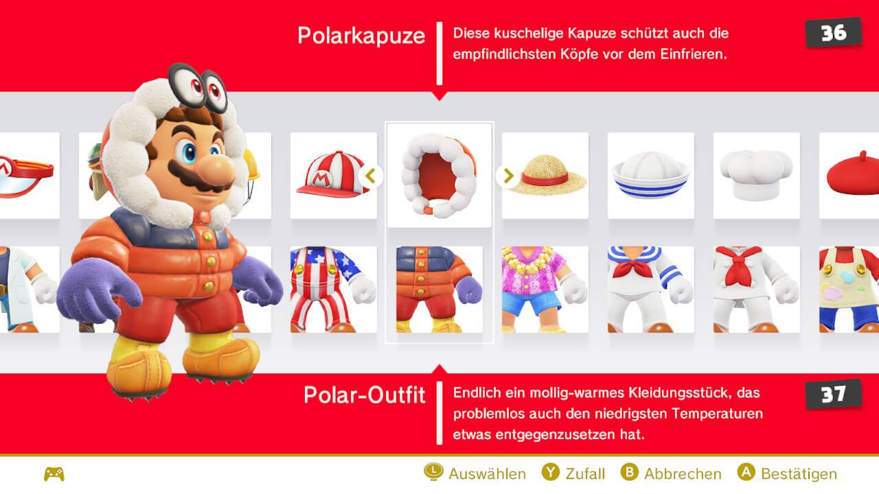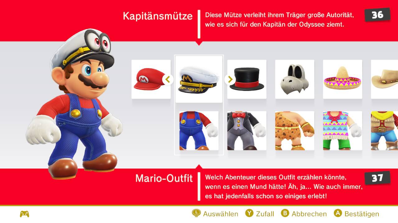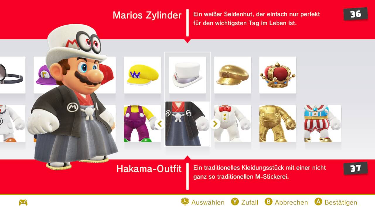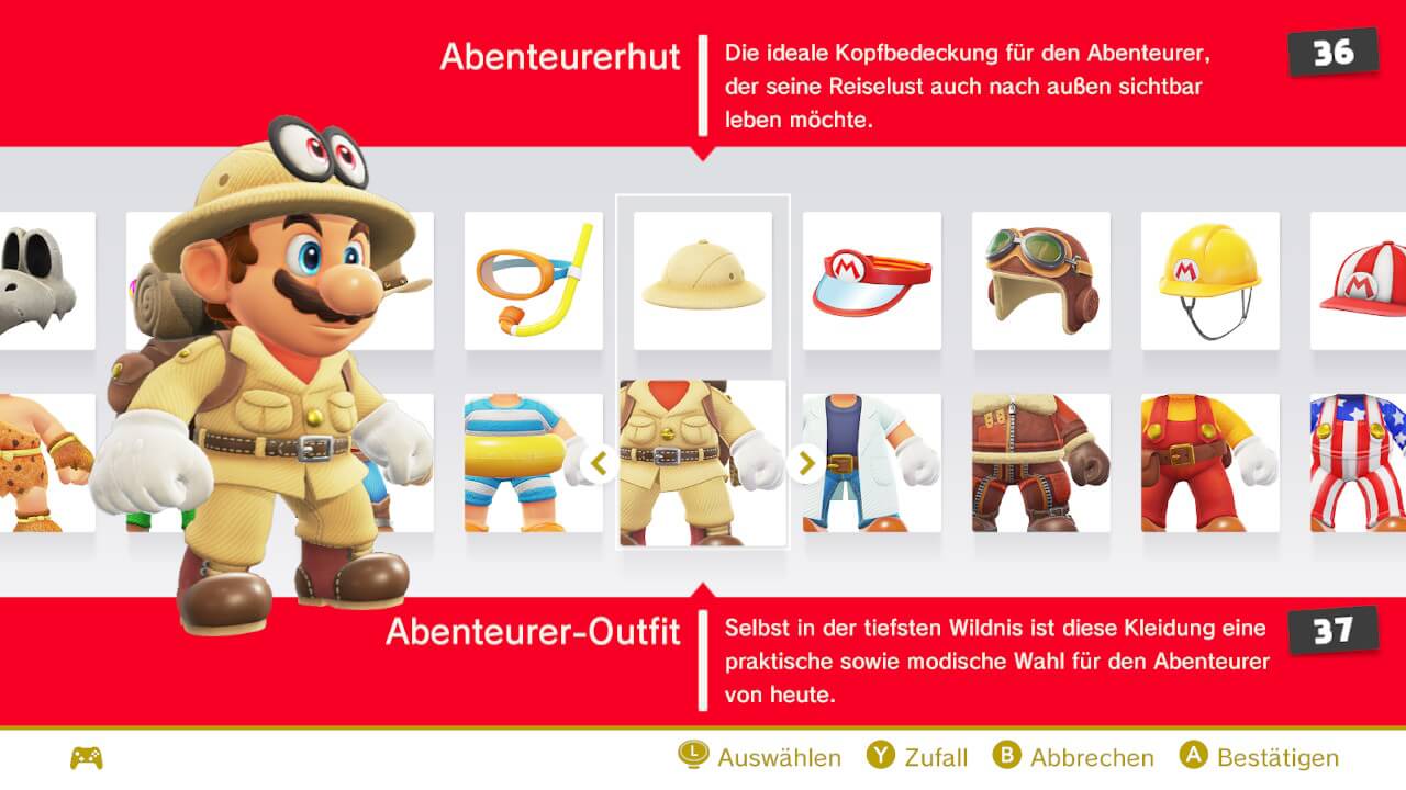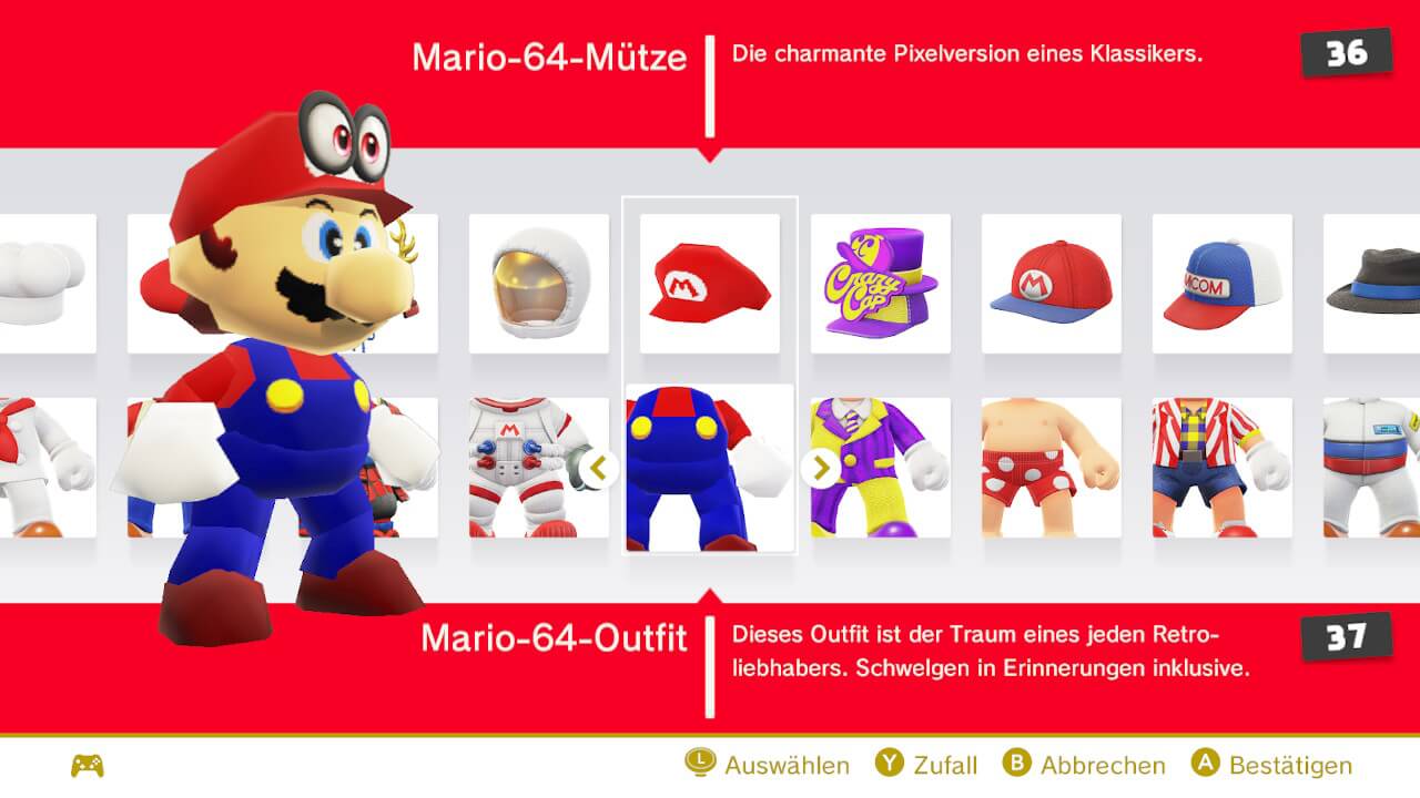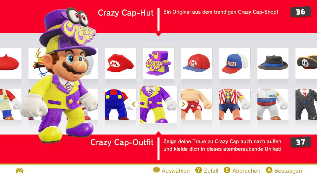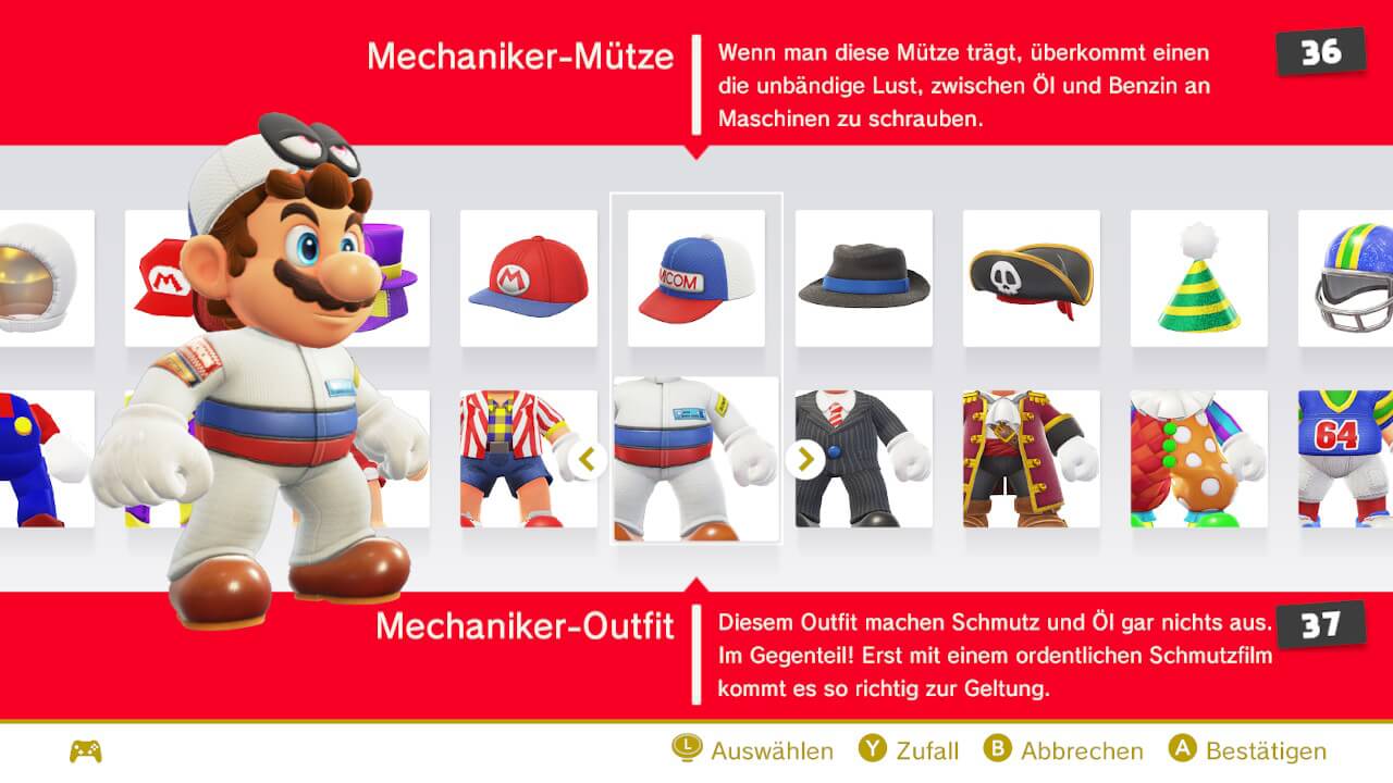In Super Mario Odyssey könnt ihr den quirligen Klempner in alle möglichen Outfits kleiden. Einige davon sind Hommagen an ältere Super Mario-Titel, andere gab es so noch nie zu sehen. Outfits bestehen aus einer Kopfbedeckung und einem Gewand, und können beliebig kombiniert werden. Erwerben könnt ihr die Outfits für Goldmünzen oder violette Landesmünzen in den regionalen Crazy Cap Shops. Während die meisten Super Mario Odyssey-Outfits rein kosmetisch sind, benötigt ihr andere um gewisse Passagen in den frei erkundbaren Welten freischalten zu können. Besondere Boni oder Gameplay-bestimmende Effekte haben die Outfits aber nicht. Über Amiibos könnt ihr euch Zugang zu gewissen Outfits verschaffen, es gibt aber keine exklusiven Gewänder, die nur über Amiibos ergattert werden können, wie das noch in Zelda BOTW der Fall war. In diesem Artikel werden auch Outfits aufgeführt, die es erst später im Spiel, und in freispielbaren Bonus-Welten zu kaufen gibt – seid also vor möglichen Spoilern gewarnt!