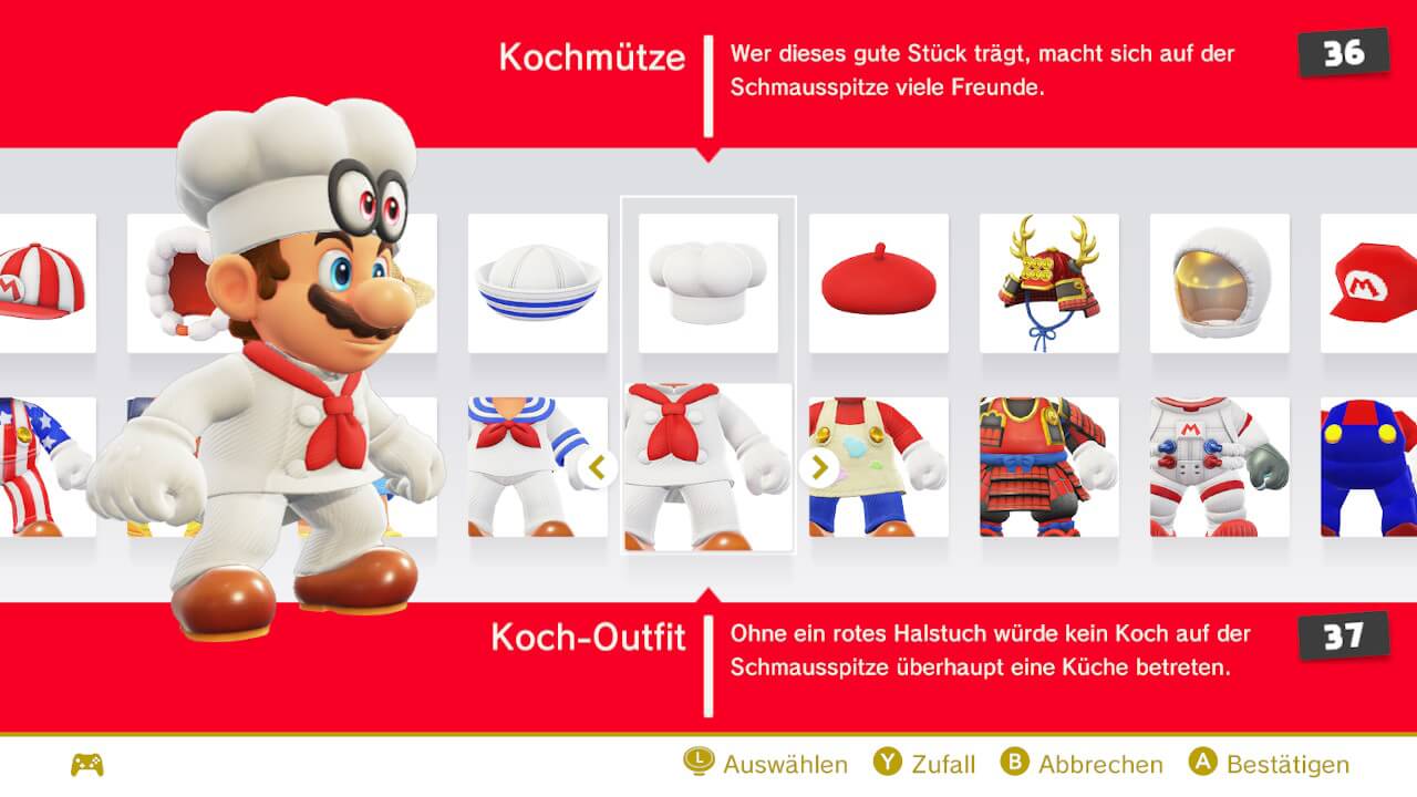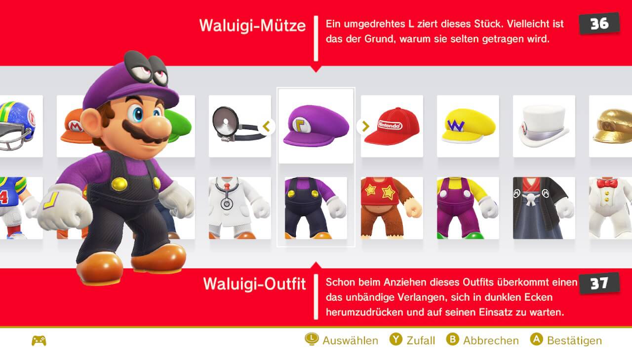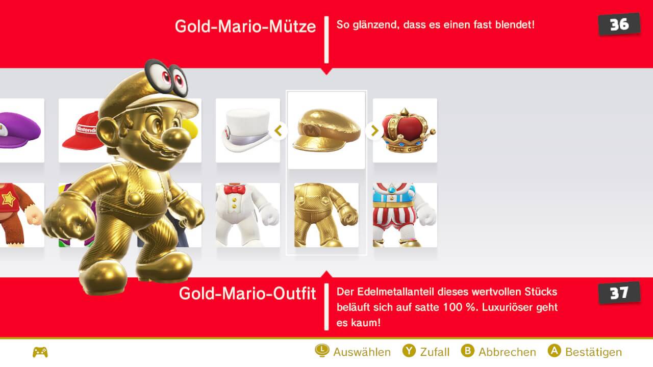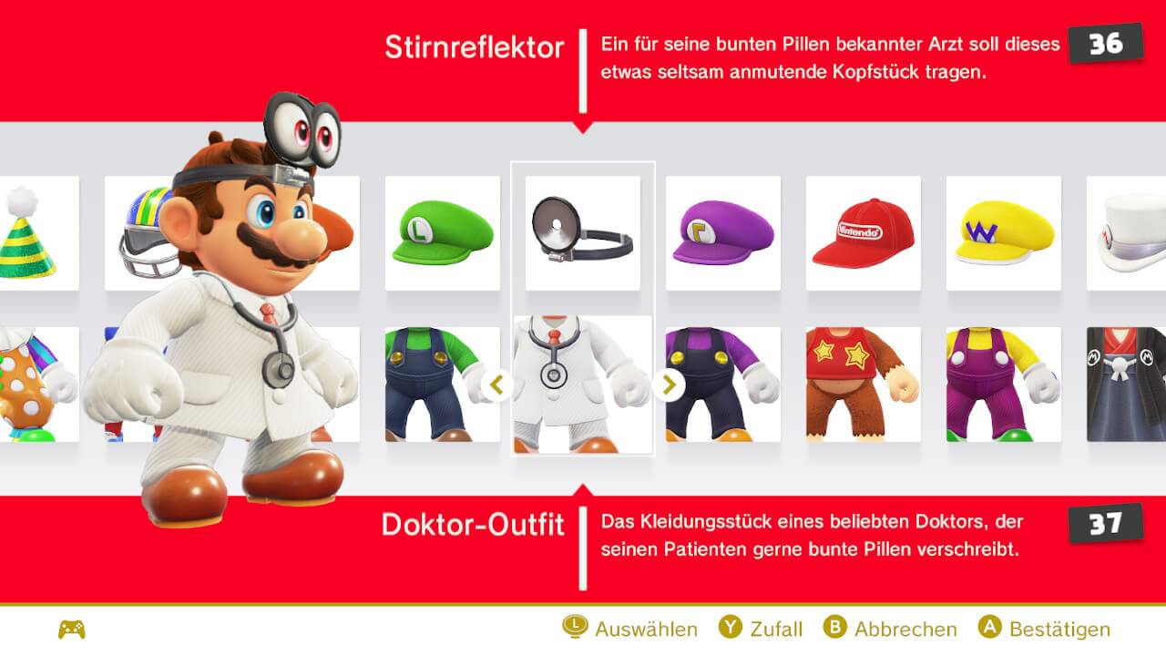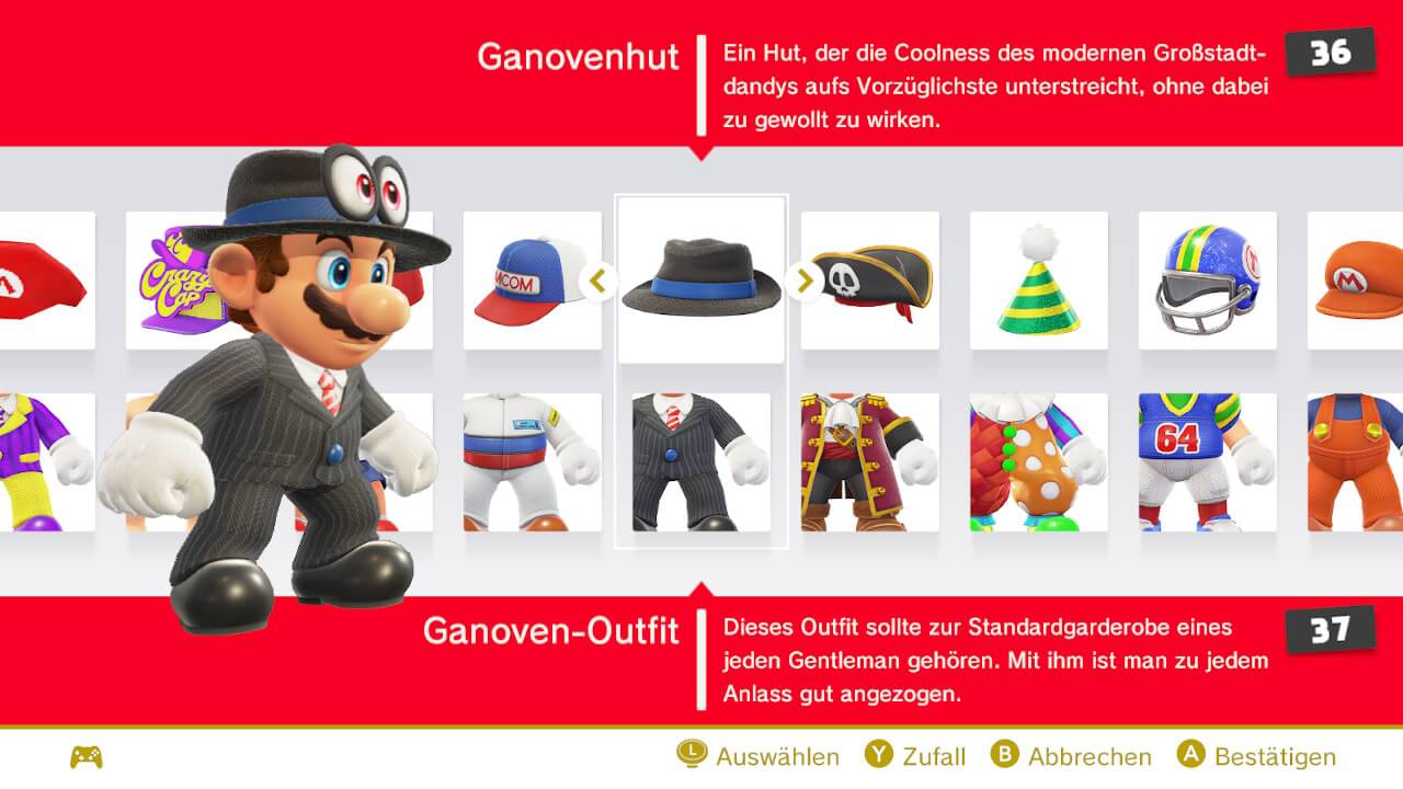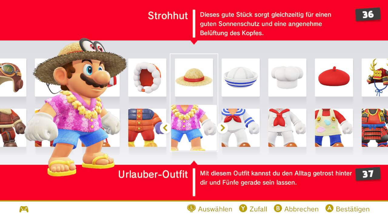 In Super Mario Odyssey könnt ihr den quirligen Klempner in alle möglichen Outfits kleiden. Einige davon sind Hommagen an ältere Super Mario-Titel, andere gab es so noch nie zu sehen. Outfits bestehen aus einer Kopfbedeckung und einem Gewand, und können beliebig kombiniert werden. Erwerben könnt ihr die Outfits für Goldmünzen oder violette Landesmünzen in den regionalen Crazy Cap Shops. Während die meisten Super Mario Odyssey-Outfits rein kosmetisch sind, benötigt ihr andere um gewisse Passagen in den frei erkundbaren Welten freischalten zu können. Besondere Boni oder Gameplay-bestimmende Effekte haben die Outfits aber nicht. Über Amiibos könnt ihr euch Zugang zu gewissen Outfits verschaffen, es gibt aber keine exklusiven Gewänder, die nur über Amiibos ergattert werden können, wie das noch in Zelda BOTW der Fall war. In diesem Artikel werden auch Outfits aufgeführt, die es erst später im Spiel, und in freispielbaren Bonus-Welten zu kaufen gibt – seid also vor möglichen Spoilern gewarnt!
