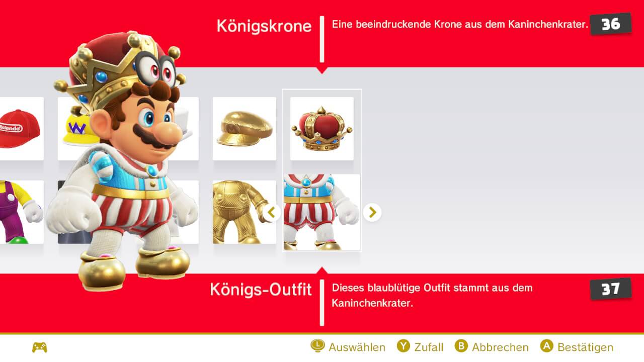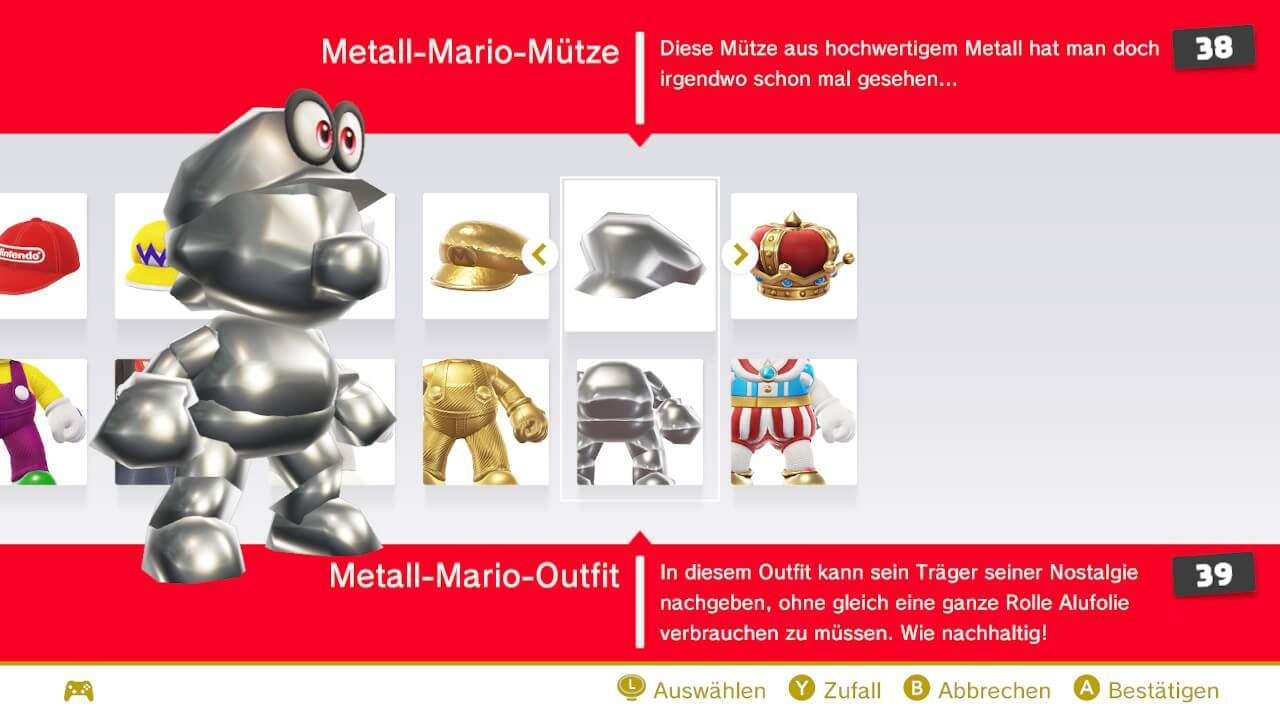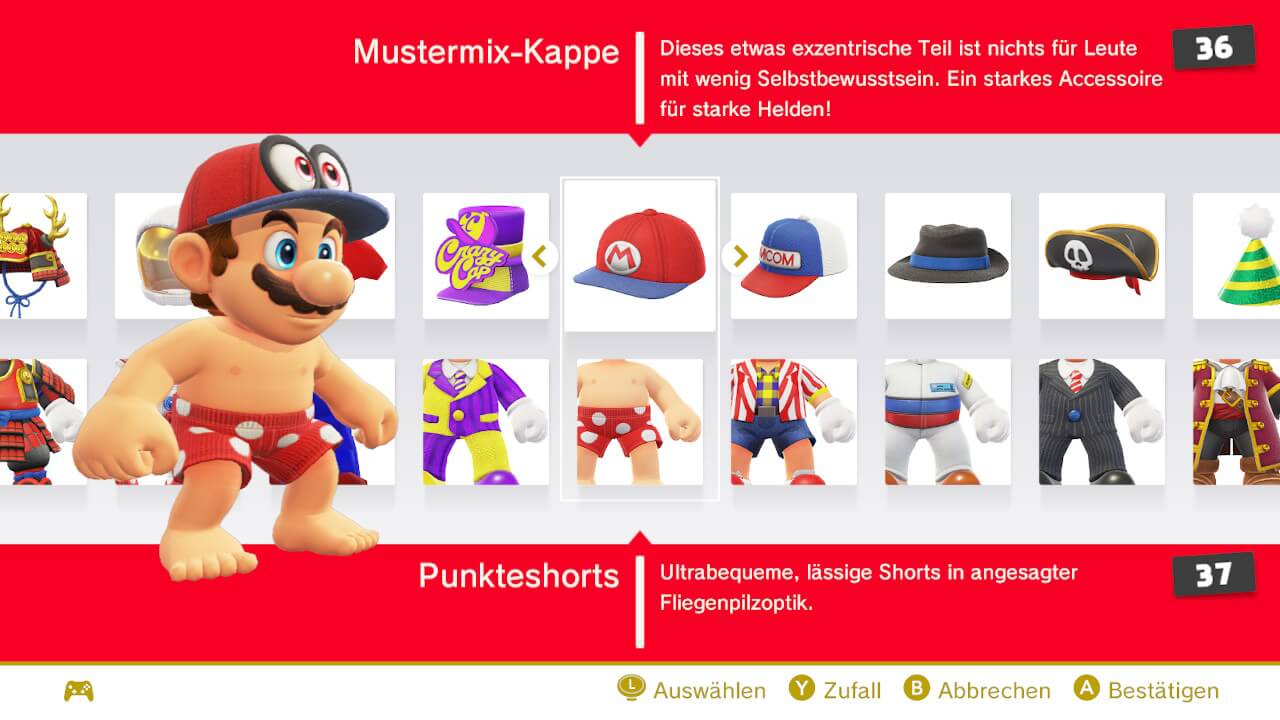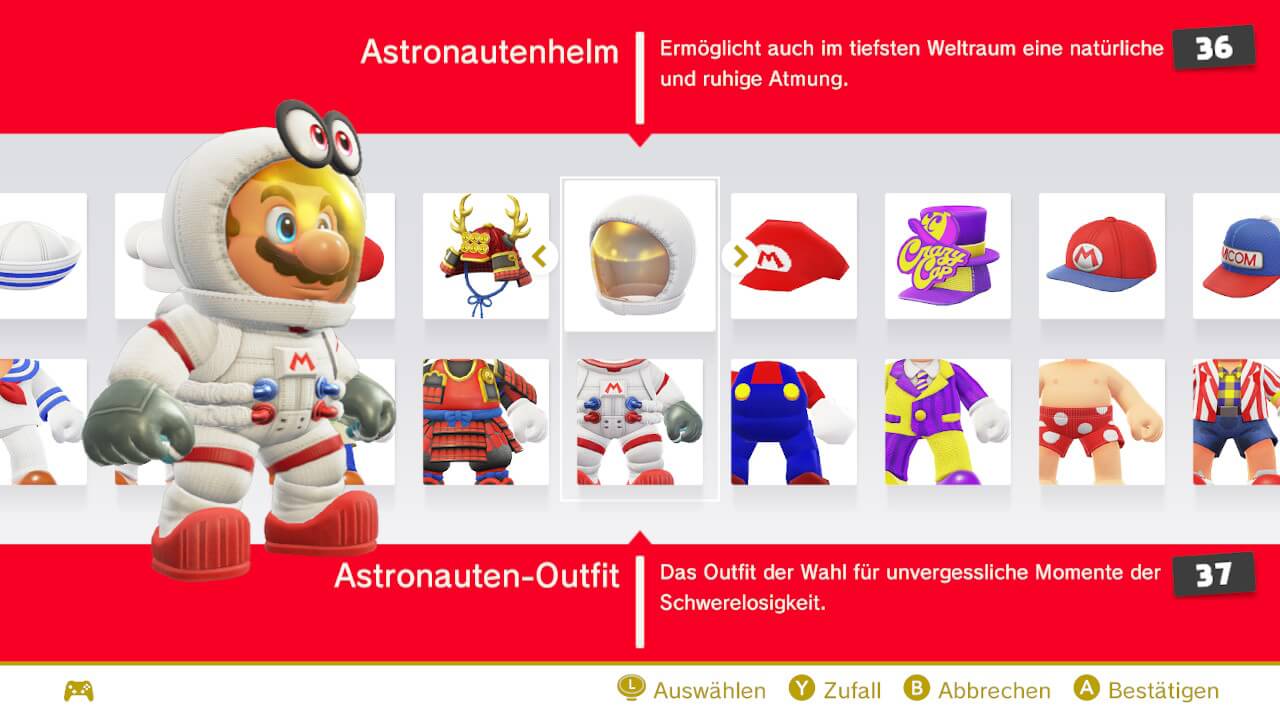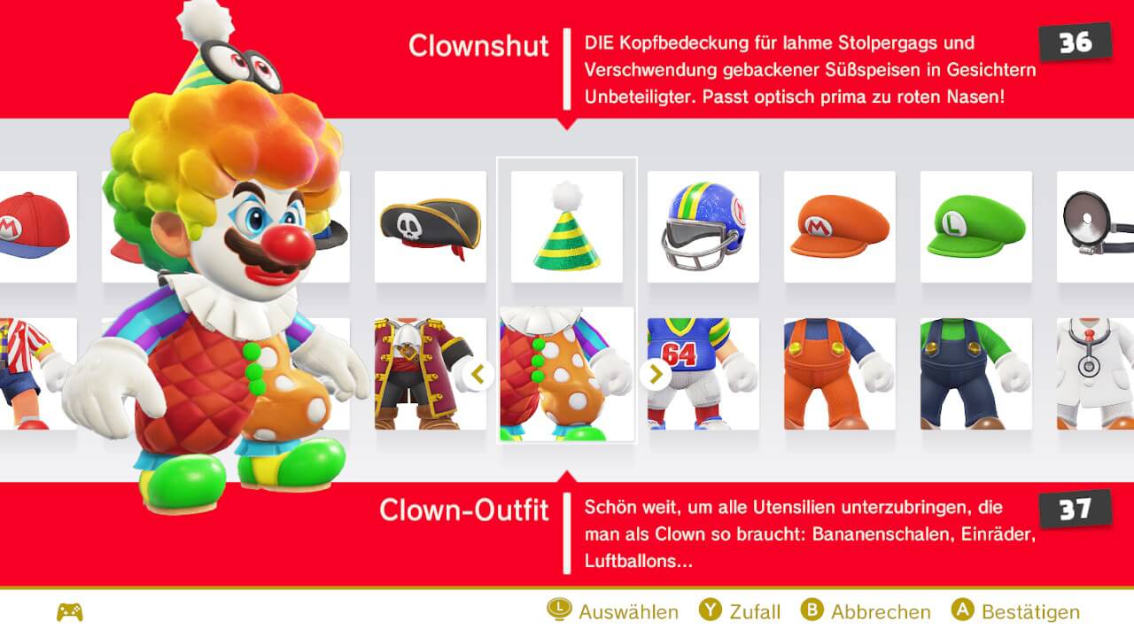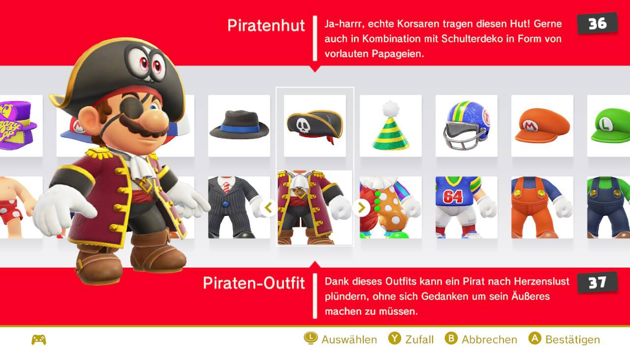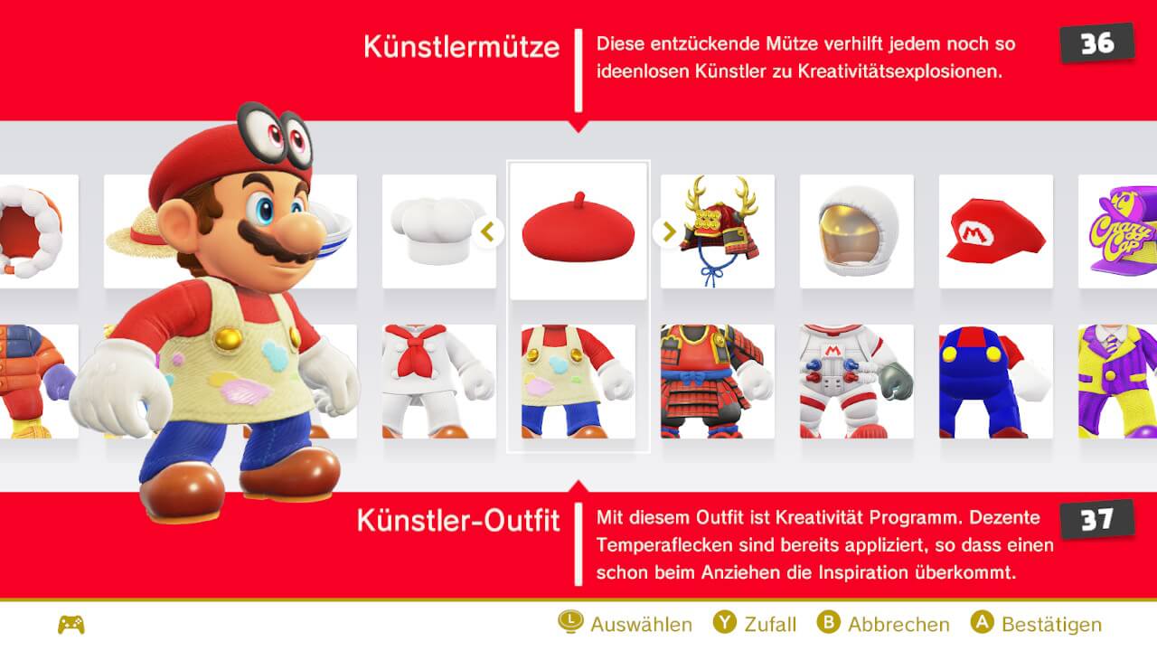 In Super Mario Odyssey könnt ihr den quirligen Klempner in alle möglichen Outfits kleiden. Einige davon sind Hommagen an ältere Super Mario-Titel, andere gab es so noch nie zu sehen. Outfits bestehen aus einer Kopfbedeckung und einem Gewand, und können beliebig kombiniert werden. Erwerben könnt ihr die Outfits für Goldmünzen oder violette Landesmünzen in den regionalen Crazy Cap Shops. Während die meisten Super Mario Odyssey-Outfits rein kosmetisch sind, benötigt ihr andere um gewisse Passagen in den frei erkundbaren Welten freischalten zu können. Besondere Boni oder Gameplay-bestimmende Effekte haben die Outfits aber nicht. Über Amiibos könnt ihr euch Zugang zu gewissen Outfits verschaffen, es gibt aber keine exklusiven Gewänder, die nur über Amiibos ergattert werden können, wie das noch in Zelda BOTW der Fall war. In diesem Artikel werden auch Outfits aufgeführt, die es erst später im Spiel, und in freispielbaren Bonus-Welten zu kaufen gibt – seid also vor möglichen Spoilern gewarnt!