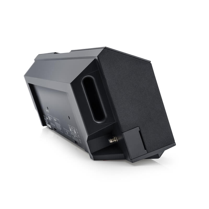 Wie gut ein Lautsprecher klingt, hängt auch von seiner Position im Raum ab. Für den optimalen Sound gibt es für die Musicstationgleich drei Aufstellungsvarianten: angewinkelt oder aufrecht stehend, beispielsweise auf dem Tisch oder Sideboard oder direkt mit der mitgelieferten Adapterplatte an der Wand montiert. Trotz ihrer schlanken Figur liefert die Musicstationsatte 100 Watt Audio-Power. Je zwei Breidband- und Tieftöner sind nach vorne ausgerichtet. Zwei weitere Mitteltöner strahlen seitlich ab, um zusammen mit der in Berlin von Lautsprecher Teufel entwickelten Dynamore-Technologie ein sehr breites Stereopanorama abzubilden.