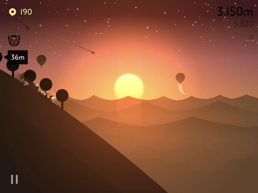 Schritt für Schritt werdet ihr in die Welt von Alto‘s Odyssey entführt. Während ihr die Grundlagen von Wallruns und Abgrundsprüngen erlernt, zieht euch das Spiel in seinen Bann. Durch die beruhigende und doch gemütliche Atmosphäre wirkt dieser iOS-Titel wie ein kleiner Zufluchtsort. Durch die später kniffligeren Ziele kann es aber schon passieren, dass ihr eure Entspannung mit einem Schimpfwort unterbrecht!