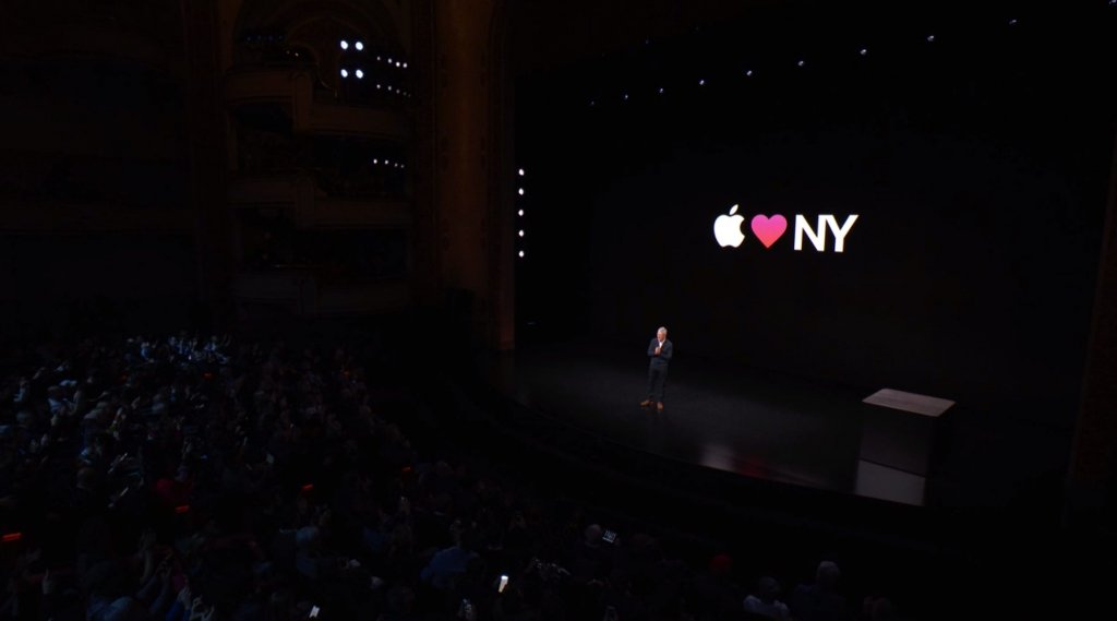 Den Start macht wie üblich ein aufwändig gestaltetes Intro, in dem diesmal eine Vielzahl an unterschiedlich aussehenden Apple-Logos tanzt. Nicht nur das, ein weiteres Video zeigt das iPhone, wie es im alltäglichen Leben eingesetzt wird. So weit nichts Neues zu sehen, doch der Fokus des Videos und des Songs liegt auf New York. Dann erscheint Apple-CEO Tim Cook – alles wie gehabt.