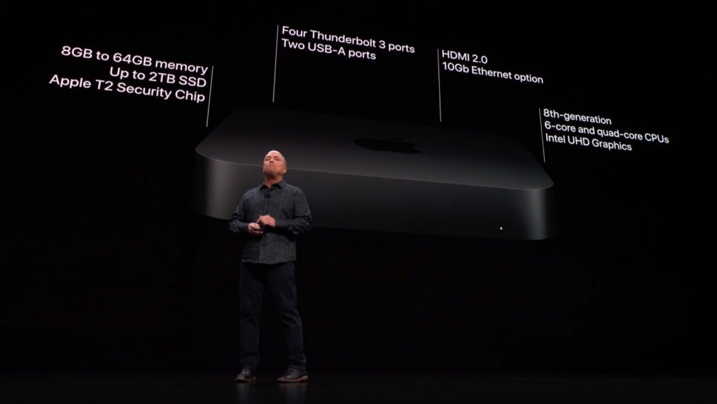 Der Mac mini kann auf bis zu 64 GB Arbeitsspeicher aufgewertet werden, auf bis zu 2 TB SSD und bekommt Intel-CPUs der 8. Generation: Ihr seht, so mini ist der Mac mini 2018 ab Oktober gar nicht mehr. Er kostet ab 899 Euro (mit einem i3-Prozessor), und während Angela Ahrendts über „Today at Apple“ in den USA spricht, könnt ihr hier den Überblick ansehen:
