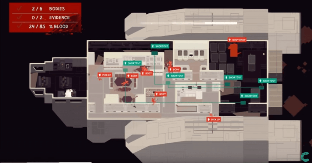 Als Kind der 90er sind mir nicht alle Filme ein Begriff; Der Mann mit der Todeskralle, Suspiria oder Ein Fressen für die Geier sagen mir zum Beispiel überhaupt nichts. Doch die Titel, die ich kenne, machen mich neugierig, welches Szenario sich die EntwicklerInnen wohl dazu für Serial Cleaner überlegt haben. Schleppen wir im Level zu Die Ritter der Kokosnuss einen arm- und beinlosen Ritter durch den Wald? Helfen wir in Star Wars der dunklen Seite? Und welcher blutige Tatort wird uns wohl in Alien erwarten?