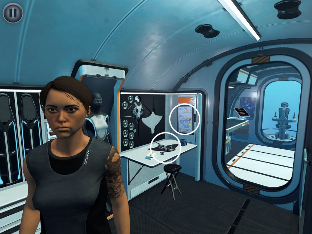 Habt ihr dann alle Aufgaben erfüllt, geht es entweder zurück zur Boje für die nächste Runde oder zurück ins U-Boot. Durch Videotelefonie könnt ihr dann mit verschiedenen Leuten wie etwa Forschungsteammitglied Andre oder eurer eigenen Schwester Kontakt aufnehmen. Sind die sozialen Gespräche dann erschöpft oder zu eurer Zufriedenheit erledigt, dürft ihr euch an den nächsten Tauchgang wagen. Alles scheint in schönster Harmonie abzulaufen – wenn da nicht diese mysteriösen Geräusche wären, die immer regelmäßiger von weit unten zu orten sind…