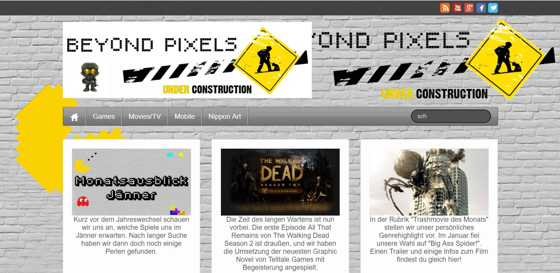 Mit der Plattform, die zwar noch nicht schön anzusehen, aber funktional war, wuchs sowohl das Interesse der Entertainmentinteressierten an BeyondPixels als auch jenes unseres FreundInnen- und Bekanntenkreises. So begrüßten wir kurz darauf Ben Vollmann in unserem Team, der unsere Corporate Identity (kurz CI) entwickelte. Mit den neuen Designvorgaben erstrahlte BeyondPixels.at kurz darauf in neuem Licht.
