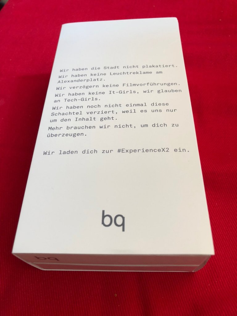 „Wir haben die Stadt nicht plakatiert„, so bq. Das kann auch nach hinten losgehen, wenn die Marke nur wenige Leute kennen. Genauso sagen sie „Wir haben keine Leuchtreklame am Alexanderplatz.“ Doch am beeindruckendsten ist der Satz „Wir haben noch nicht einmal diese Schachtel verziert, weil es uns nur um den Inhalt geht. Mehr brauchen wir nicht, um dich zu überzeugen.“