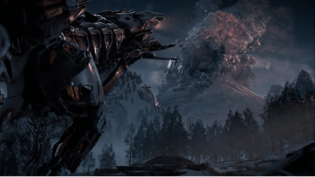 Viel mehr verrät der Trailer zur Geschichte nicht. Anscheinend macht sich Aloy auf den Weg zum Schicksalberg, um dort den einen Ring zu vernichten zu einem rauchenden Berg, in dem sie sich Antworten auf etwas erhofft. Doch natürlich wird dieser Ort bewacht; es wird also nicht ganz einfach sein, das gewünschte Ziel zu erreichen.