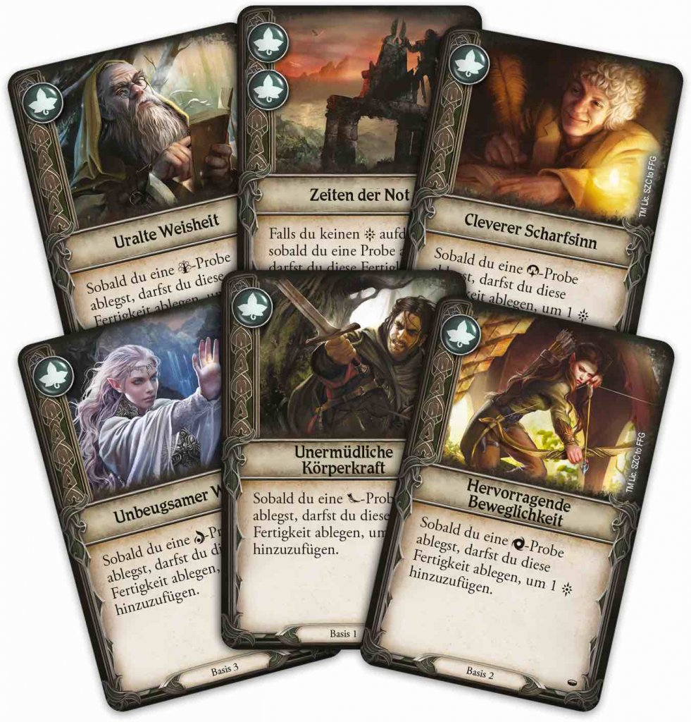 Eure Heldenfiguren haben nämlich gewisse Statuswerte, wie etwa Stärke, Weisheit oder Agilität. Gilt es, einer Falle auszuweichen, werdet ihr auf Agilität geprüft, ein Angriff mit Gimlis Axt hingegen verlangt nach einer Stärkeprüfung. Ihr zieht die entsprechenden Karten, und wenn ihr die erforderliche Anzahl von Erfolgskarten zieht, habt ihr die Prüfung geschafft. Doch selbst, wenn ihr scheitert (oder gar im Kampf bewusstlos werdet), Der Herr der Ringe: Reise durch Mittelerde bestraft euch nicht wirklich. Die Reise geht immer irgendwie weiter, nur bekommt ihr nicht die Boni, die eventuell möglich gewesen wären.