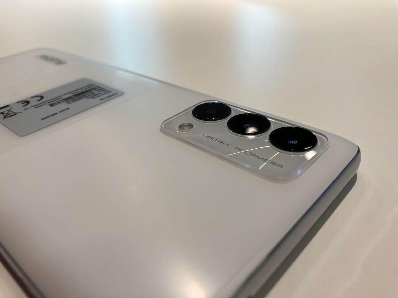 Das Smartphone an sich ist beim Auspacken ein Hingucker. Die matte Rückseite in schönem Weiß verpasst dem Gerät ein edles Aussehen, und Fingerabdrücke bleiben nicht haften. Ein Fingerabdrucksensor ist im Display eingebaut und funktioniert super. An der Unterseite verbaut realme neben dem USB-C-Anschluss eine 3,5 mm-Buchse. Der Kamerablock mit drei gleich großen Sensoren steht hinten etwas hervor, eine mitgelieferte gummierte Hülle gleicht das aber gekonnt aus. Wasserdicht ist die realme GT Master Edition wie auch schon die Normalversion nicht. Was uns zum Thema bringt: