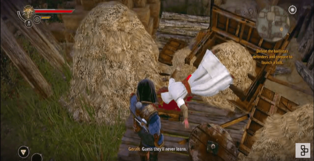 Eine sehr beliebte Art des Eastereggs ist es auch, andere Videospiele zu referenzieren. So kann Geralt im Prolog von The Witcher 2 einen Assassinen entdecken, dessen Sprung in den Heuhaufen gehörig missglückt ist. „Sie werden es nie lernen“, kommentiert Geralt die Szene trocken.