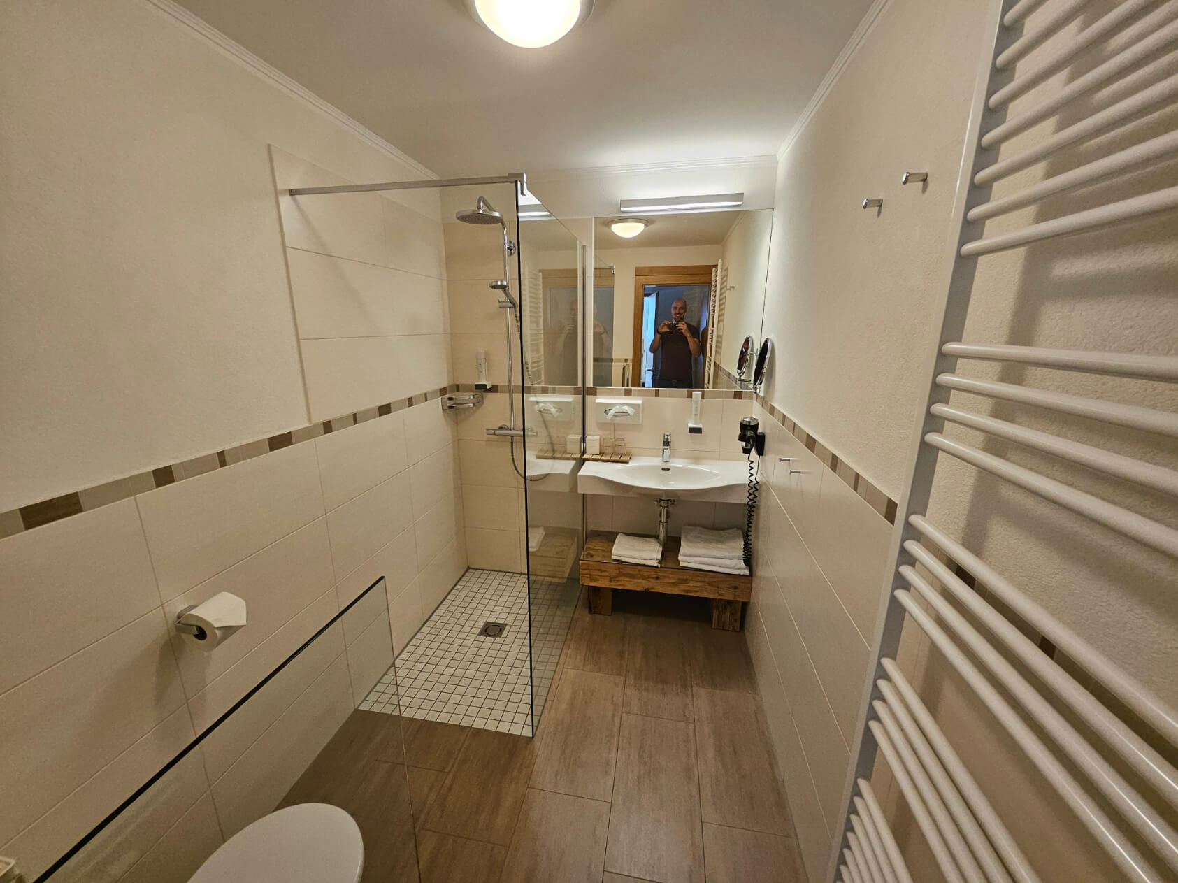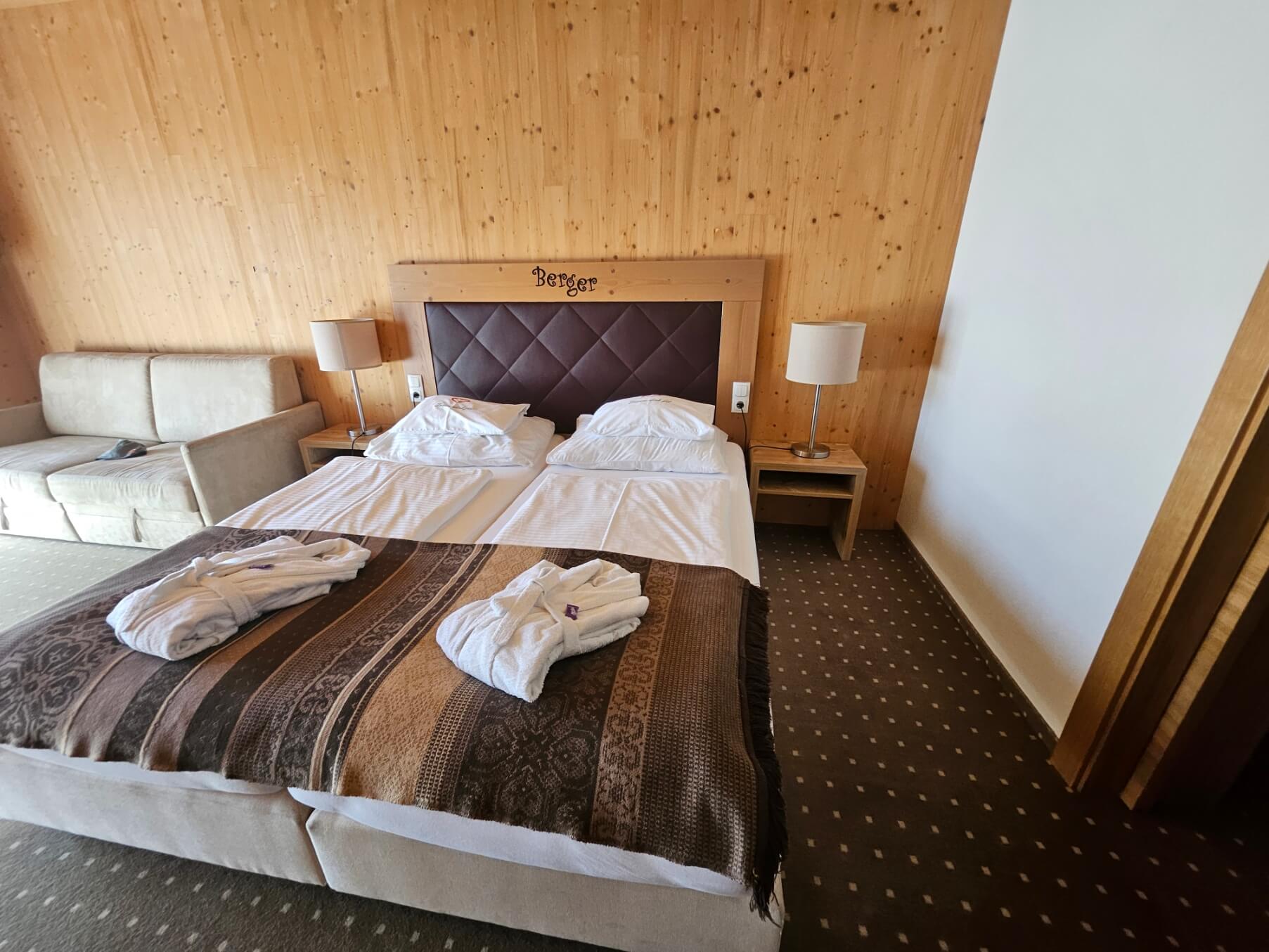 Als wir unser Zimmer das erste Mal betraten, fiel uns sofort die warme Atmosphäre auf. Durch die hochwertige Holzoptik wirkt der Raum unglaublich gemütlich und lädt sofort zum Entspannen ein – genau das richtige Flair für einen Frühlingsurlaub. Ein riesiger Pluspunkt für uns als Eltern ist die Aufteilung und die großzügigen Räume: Dank der zwei separaten Schlafzimmer haben wir noch Zeit zu zweit. Wenn die Kinder im Bett sind, können wir den Abend in aller Ruhe ausklingen lassen, ohne durch das Zimmer schleichen zu müssen. Später schläft dann jeweils ein Kind und ein Erwachsener in einem Bett und auch da sind unterschiedlichen Aufstehzeiten abermals kein Problem. Es gibt ja nichts Schlimmeres als müde Kinder im Urlaub und das wird uns hier keinesfalls passieren. Ein riesen Pluspunkt für den gesamten Urlaub.