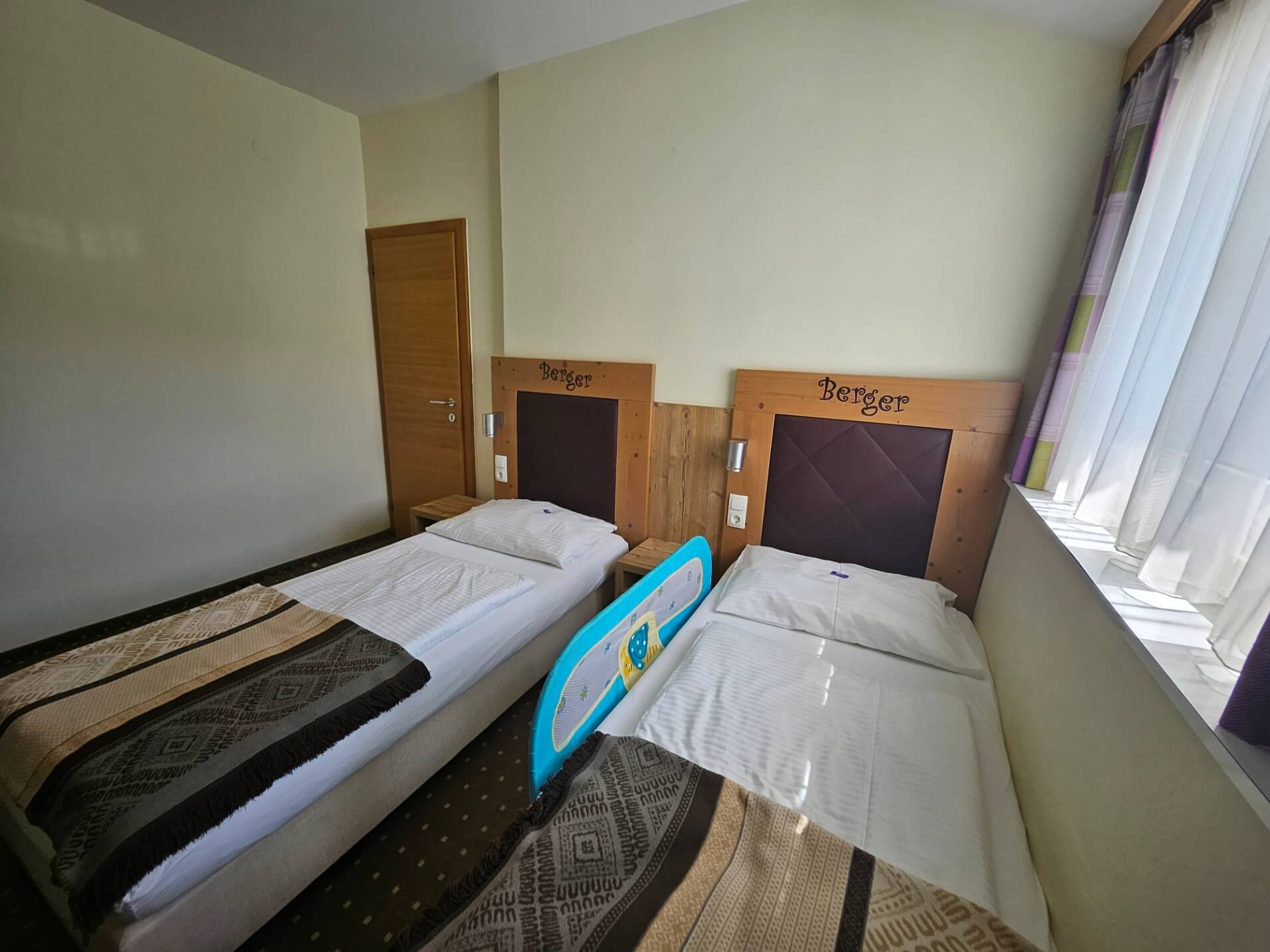 Aber nicht nur die Aufteilung auch die Liebe zum Detail in puncto Sicherheit und Komfort. Das Hotel hat wirklich an alles gedacht. Es gibt überall Kindersicherungen, sodass wir die Kleinen unbesorgt auf Entdeckungstour gehen lassen können. Für einen erholsamen Schlaf sorgen die Außenrollos bzw. dichten Vorhänge – für unsere Kinder ist eine komplette Abdunkelung extrem wichtig, um zur Ruhe zu kommen. Auch an die ganz Kleinen wurde gedacht. Ein Rausfallschutz am Bett war bereits installiert und sogar ein Windeleimer und eine Wickelauflage stehen bereit. Außerdem ist es möglich sich ein Babyfon, Fläschchenwärmer oder eine Kinderrückentrage auszuleihen. Es ist diese durchdachte Ausstattung, die den Urlaub von der ersten Minute an stressfrei macht und uns gleich gut ankommen hat lassen. Man merkt einfach, dass hier echte Familien-Experten am Werk sind.