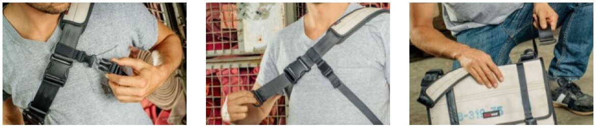 Feuerwear liegt nicht nur Wert auf ein extrem widerstandsfähiges Ausgangsmaterial, sondern beschert den KäuferInnen auch Komfort: So verfügt der Messenger-Bag Gorden beispielsweise über einen mehrfach verstellbaren Tragegurt (inkl. Quergurt zur Stabilisierung), einen hochwertigen Schulterpolster, eine gepolsterte Taschenrückseite und optionale Klettverschlüsse.