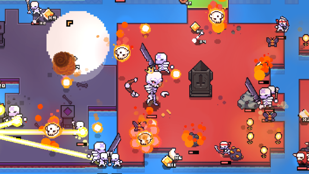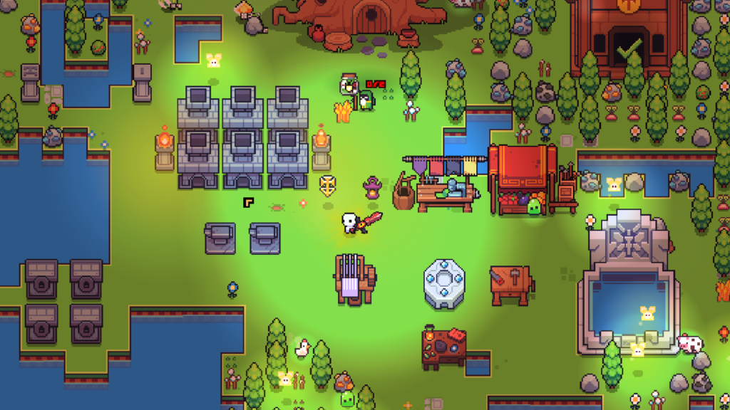 Neben dem Sammeln und Verarbeiten von Rohstoffen bietet Forager ein wahres Füllhorn leicht verdaulicher Spielmechaniken. So z.B ein Erfahrungspunktesystem, mit dem sich Verbesserungen und neue Bauten freischalten lassen. Monster wollen verkloppt, Dungeons durchkrochen und Charaktere mit ihren Wunschgegenständen versorgt werden. Stets gibt es neue Biome zu entdecken, kleine Rätsel zu lösen und Käfer zu fangen. Also ein bisschen wie The Legend of Zelda trifft Stardew Valley trifft Minecraft. Nur dass Forager in keinem Aspekt den Tiefgang dieser geistigen Vorgänger erreicht.