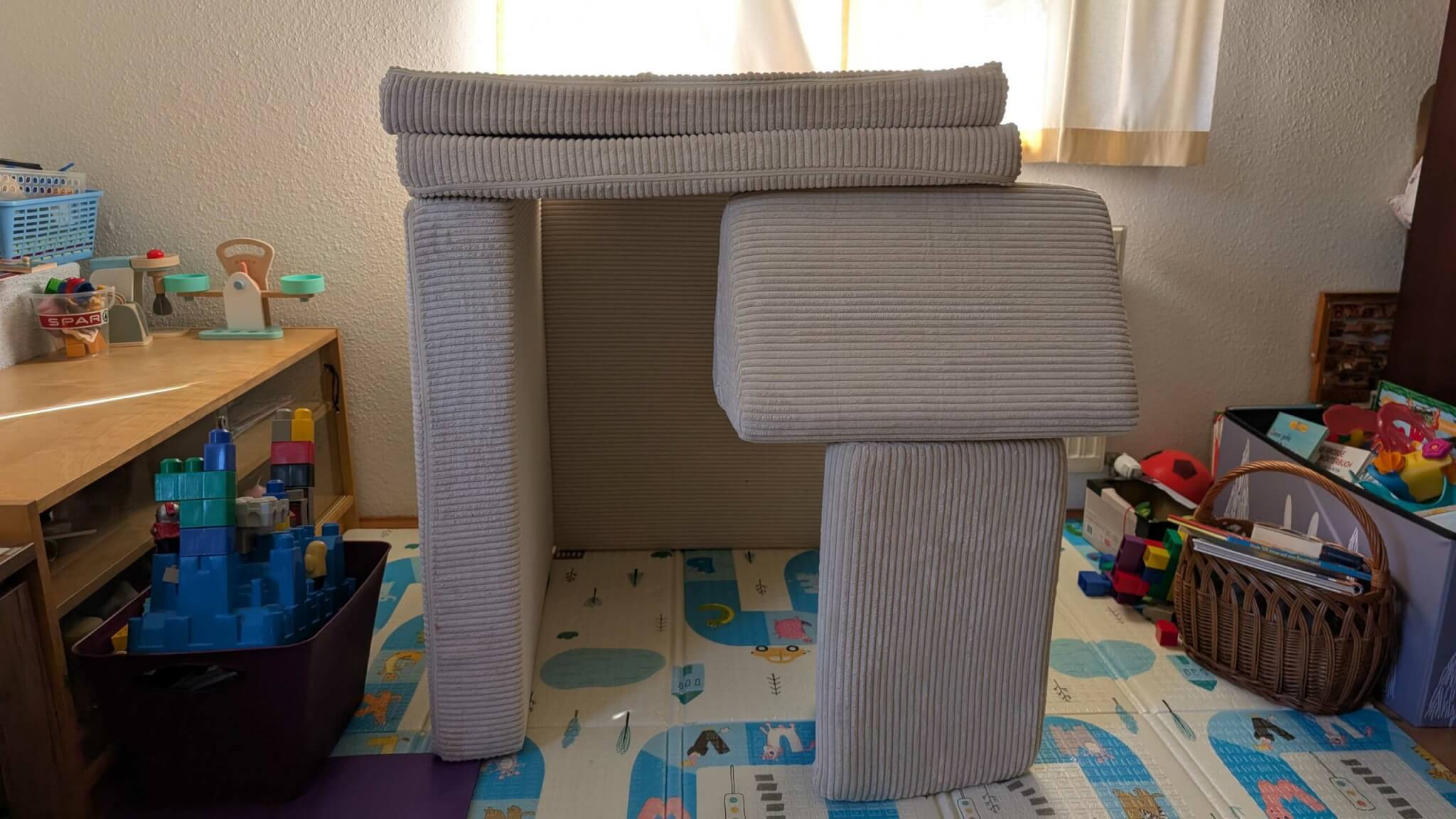 Unsere dreieinhalbjährige Tochter hat eine riesige Fantasie. Sie liebt es, sich in kleine Zelte oder selbst gebaute Höhlen zurückzuziehen, um darin zu lesen. Wir wollten diese Kreativität fördern und suchten nach einer flexiblen Lösung, die ihre Abenteuerlust unterstützt, aber auch praktisch im Alltag integriert werden kann. So sind wir auf das Funzy Spielsofa gestoßen, das wir nun einige Wochen auf Herz und Nieren getestet haben.