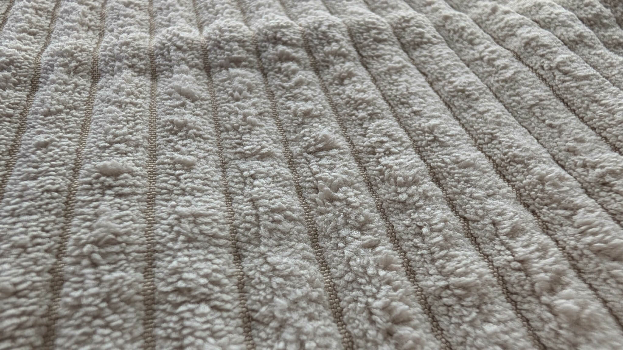 Der Bezug aus samtigem Velours fühlt sich herrlich weich sowie kuschelig an und hat eine angenehme Stauchhärte. Diese Eigenschaften sind der kausale Grund, warum das Sofa so robust und belastbar ist und selbst bei intensivem Toben seine Form behält, ohne Kuhlen zu bilden. Die Kombination aus einem Raumgewicht von 25 und dieser hohen Stauchhärte macht es zu einem stabilen Fundament für alle Spielideen.