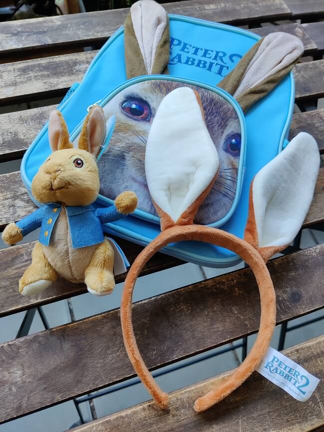 - 2 x Peter Hase 2 Goodie-Bags bestehend aus je einmal Rucksack, Hasenohren und Bag-Clip