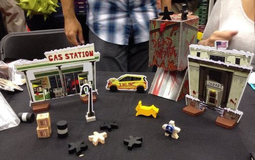 Spielinhalt: 1 Spielregel, 6 Gebäude, 4 Fahrzeuge, 18 Zombies, 11 Überlebende, 11 Rucksäcke, 11 Überlebendentafeln, 63 Karten, 102 Chips, 37 weitere Spielkomponenten, verschiedene Hilfsmittel, 1 Zombieturm