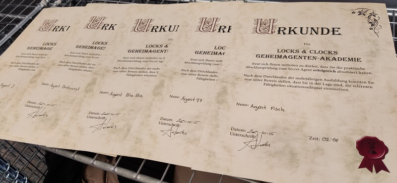 Ich bin bereits ein arrivierter Exit-the-Room-Spieler. Ich habe in Wien schon weit mehr als zwanzig Spiele in Angriff genommen und bin nur das erste Mal nicht rechtzeitig entkommen. Ich muss gestehen, dass ich die Urfassung der Secret Study nicht gespielt habe, aber das Erlebnis jetzt gefällt mir richtig gut. Der Raum ist mit viel Liebe zum Detail gestaltet und die Schauspieleinlagen machen den Raum zu einem Erlebnis. Ich hätte mir noch eine Falltür oder weiteren Raum gewünscht, aber auch so wird im Rahmen der Möglichkeiten alles aus dem kleinen Bürgermeisterbüro herausgeholt. Besonders erwähnen möchte ich hier nochmals das Team von Locks & Clocks, die mit Herzlichkeit und Herzblut gleichermaßen mitten ins Herz treffen.