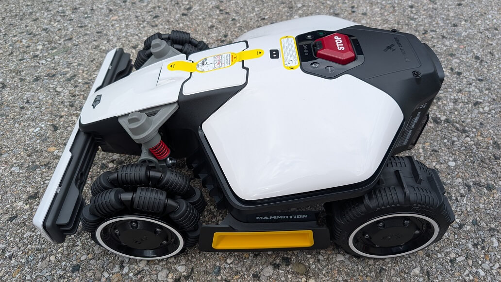 Besonders ins Auge stechen die All-Terrain-Reifen, die auf den ersten Blick seine unschlagbare Geländegängigkeit andeuten. Die vorderen Omni-Wheels sind ein Geniestreich. Sie ermöglichen dem Roboter eine echte Zero-Turn-Fähigkeit, was nicht nur effizientere Manöver zulässt, sondern auch dabei hilft, saubere Rasenstreifen zu kreieren. Auch der adaptive Bumper und das adaptive Federungssystem zeigen, dass hier an die harten Realitäten eines echten Gartens gedacht wurde, der weit entfernt von einem perfekten Rechteck ist. Jede dieser Komponenten signalisiert, dass Mammotion diesen Mähroboter als Spezialisten für schwierige Bedingungen konzipiert hat.
