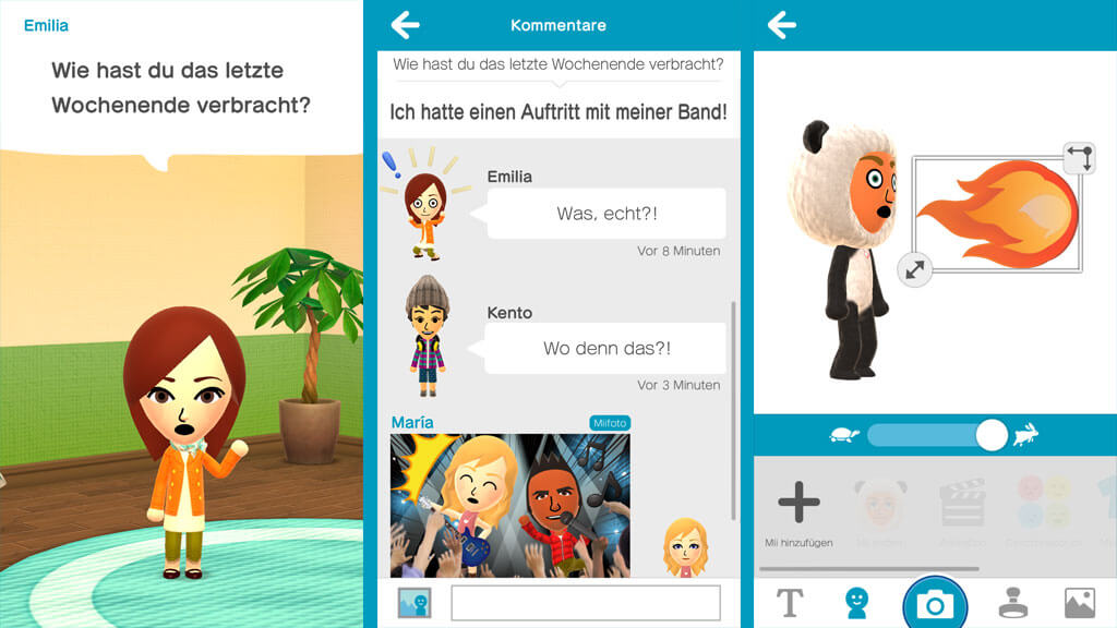 In Miitomo postet ihr nicht einfach, was euch in den Sinn kommt und pinnt es an eure Seite, wo es entweder kommentiert wird oder in einem Strom von Katzenfotos, Memes und Failvideos untergeht, ihr beantwortet Fragen, die euch die App stellt. Das klingt erstmal restriktiv und zugegeben auch nach Nintendo, aber hat auch den positiven Effekt, dass ihr so ganz zwanglos mit Leuten, die ihr nicht wirklich gut kennt, ins Gespräch kommt. „Was ist den Lieblingsessen?“, „Was hast du letztes Wochenende gemacht?“ und „Welche TV-Serie siehst du gerade?“ sind nicht nur gute Smalltalk-Themen, sie dienen zudem als Eröffnung für längere Gespräche, die sich in den Kommentaren zu einer der Fragen entfalten. In Kommentaren kann man nämlich völlig frei drauf los quatschen.