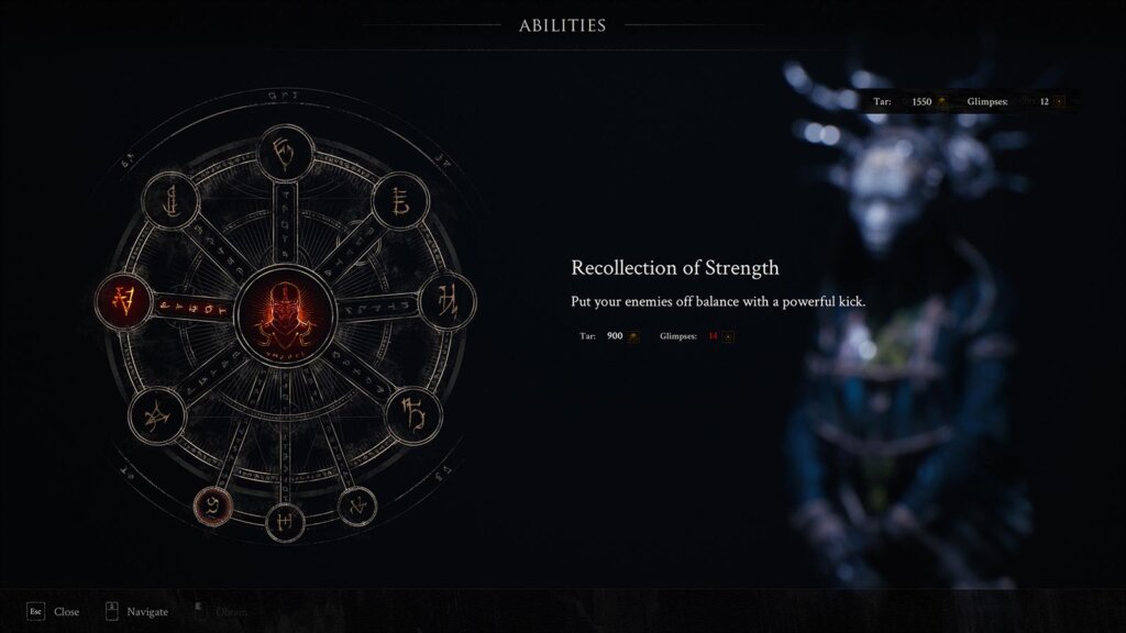 Während euch Harros die Chance gibt, bei jedem getöteten Gegner zusätzliche Einblicke zu erlangen, besitzt etwa Tiel eine immens lange Ausdauerleiste. Eine ganze Salve an verheerenden Angriffskombos inklusive anschließendem Ausweichschritt ist so möglich. Allerdings hat dieser im Umkehrschluss nur sehr wenig Gesundheit, weshalb man bei unachtsamem Vorgehen oft das Zeitliche segnet. Eredrim stellt hingegen dessen Pendant dar, verfügt er zwar nur über geringe Ausdauer, aber über extrem viel Gesundheit, was ihn etwa ideal für das Kennenlernen der Movesets bei Bosskämpfen macht.