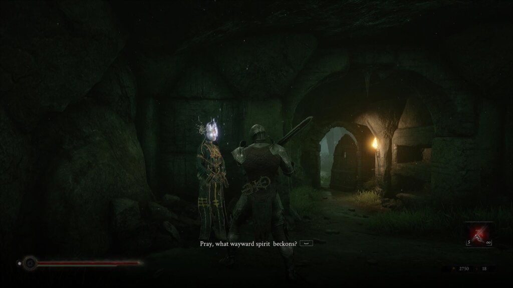Von hier aus werden wir unsere Reisen in der Folge starten. Wohin? Das erfahren wir im Turm vom dort ansässigen uralten Gefangenen. Wir sollen in die drei Tempel im Umland von Fallgrimm eindringen und ihm die dort befindenden Grandulas (was auch immer die im Kontext des Spiels jetzt genau sein sollen) bringen. Im Austausch für diese erhalten wir weitere Spielmechaniken wie das Parieren gegnerischer Angriffe. Weil wir zu diesem Zeitpunkt absolut nichts hinterfragen, nehmen wir das Angebot klarer Weise ohne zu zögern an. Na dann los!
