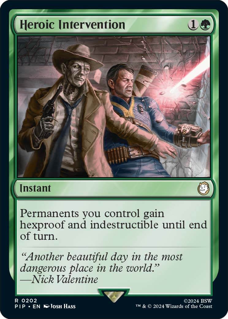 Hier noch die letzte neu gezeigte Karte des Scrappy Survivors Decks Heroic Intervention.