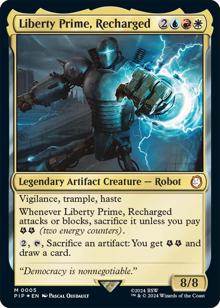 Three Dog „broadcastet“ eure Auren zu allen anderen Kreaturen und ist damit nicht nur flavourtechnisch, sonder auch spielmechanisch richtig stark. Die Spoilerseason zu MtG Fallout beginnt zwar erst, aber ich habe schon jetzt mit dem Galaxy News DJ einen herausstechenden Kandidaten für meine Lieblingskarte des Sets. Doch es gibt natürlich nicht nur neue Karten, sondern auch Reprints, d.h. alte Karten in neue aufgelegtem Fallout Design. Ein weiterer Beweis dafür, dass Wizards of the Coast es gut beherrscht fremde IPs einzuflechten ist die beliebte Karte Puresteel Paladin, die es schon seit New Phyrexia 2011 gibt. Praktischerweise gibt es nämlich in Fallout den Rang Paladin, der die Elitesoldaten der Brotherhood darstellt. Somit wurden in einer Karte zwei Welten miteinander verschmolzen.![]()