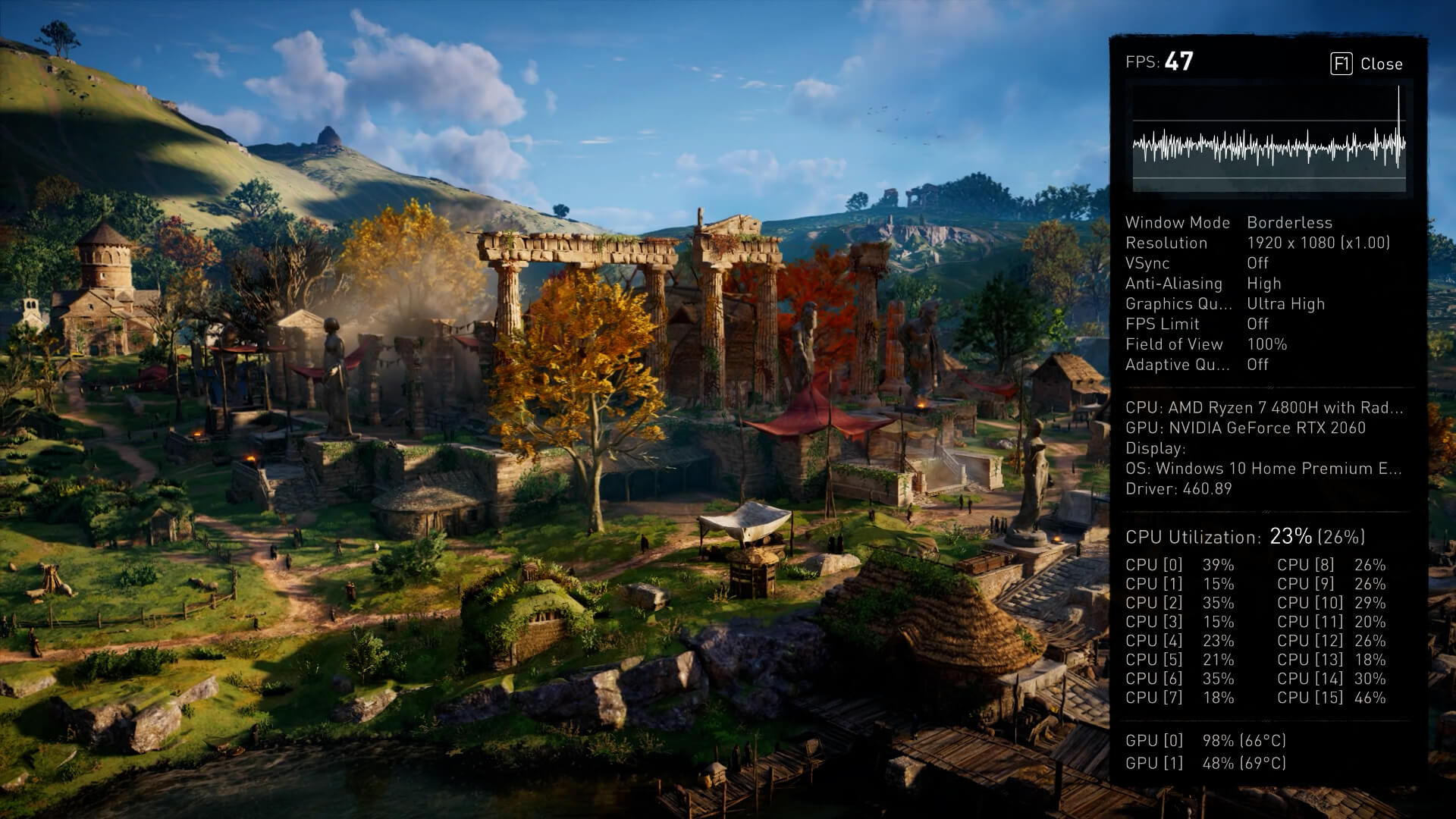 Bei Assassin’s Creed: Valhalla erreicht der OMEN 15 en0375ng gar 47 Frames im Durchschnitt und bleibt bis auf ganz kurze Aussetzer immer jenseits der 30 Bilder pro Sekunde. Und das bezieht sich auf eine Full-HD Auflösung bei allen Reglern auf Maximum – ziemlich nice also.
