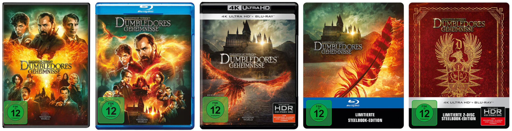 Warner Bros. veröffentlicht Phantastische Tierwesen: Dumbledores Geheimnisse am 14.07.2022 auf 4K Ultra HD, Blu-ray und DVD. Digital ist der dritte Teil der Phantastischen Tierwesen-Saga seit dem 07.04.2022 erhältlich. Die 4K-UHD-Blu-ray, Blu-ray und DVD erscheint in einem 1-Disc-Set, die Steelbook-Versionen in einem 2-Disc-Set.