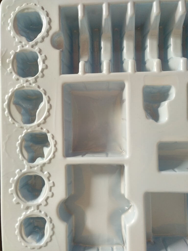 Während ein dünner blauer Plastikeinsatz gut dafür sorgt, dass alle Spielkomponenten beim Aufbewahren in der Schachtel ihren Platz haben, ohne durcheinander zu rutschen, war ich auch von dessen minderer Qualität enttäuscht: Schon beim Erstöffnen der Schachtel waren mehrere der Aussparrungen verbogen und verwölbt.