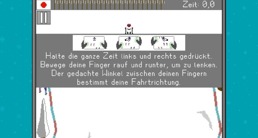 Der Slalom verlangt von euch, dass ihr beide Daumen auf den Screen legt. Mittels Verrutschen steuert ihr euren Avatar, und ihr müsst durch die Tore fahren. Jedes verpasste Tor legt euch eine Zeitstrafe auf, es gilt also, einen perfekten Lauf hinzulegen. Derzeit scheinen 30,8 Sekunden die magische Grenze zu sein.