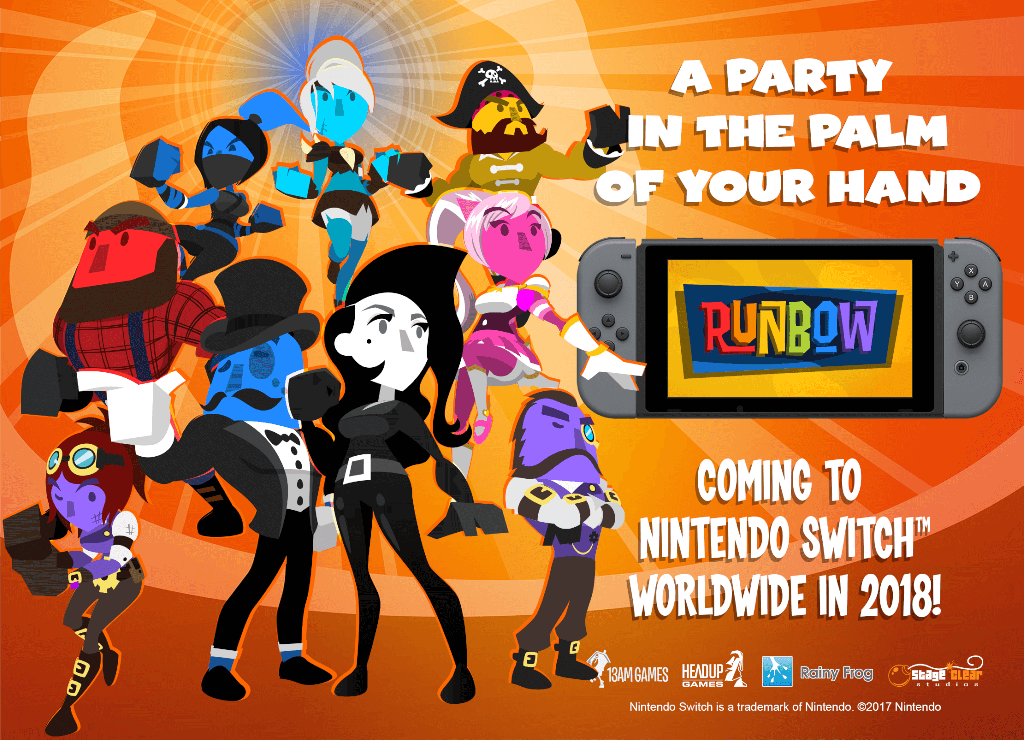 Kurz nach der Ankündigung für PS4 enthüllten 13AM Games, die Stage Clear Studios und Headup Games, dass der Multiplayer-Titel Runbow 2018 auch für die Switch erscheinen und bereits nächste Woche auf der TGS 2017 spielbar sein wird. Als Releasezeitraum wird 2018 angepeilt.