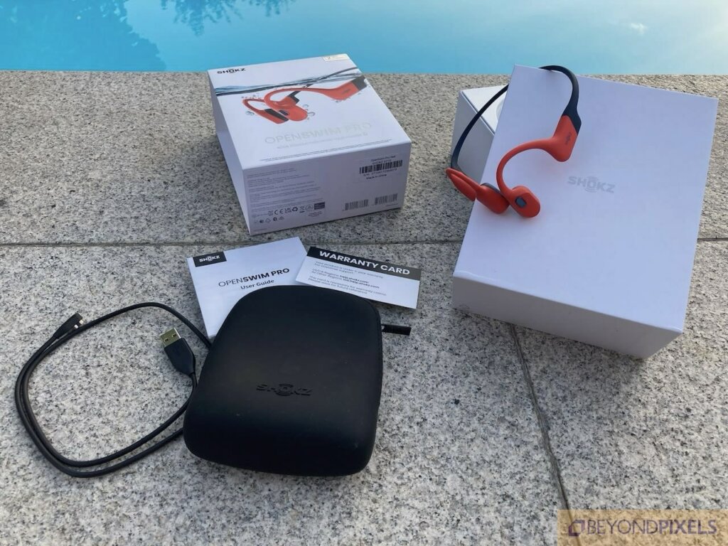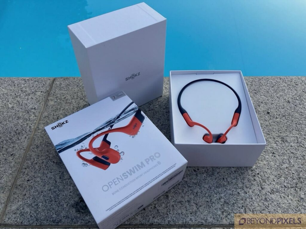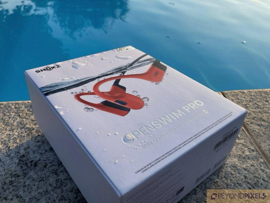 Genauer gesagt bedeutet dies, dass ihr dieses Gerät bis zu zwei Meter tief untertauchen dürft, und das für bis zu zwei Stunden am Stück. Das sollte für jedes Workout im Wasser reichen! Dank der Open-Ear-Konstruktion hört ihr dabei euer Umfeld immer mit, somit lassen sich die Shokz OPENSWIM PRO auch problemlos im Straßenverkehr tragen. Da nichts in euren Ohren steckt, ist das längere Tragen dieser Kopfhörer auch äußerst komfortabel. Bis zu neun Stunden halten die Knochenschall-Kopfhörer durch, und der stabile Halt des flexiblen Bügels sichert den Sitz an eurem Kopf. Legen wir los mit unserem Testbericht und packen wir das Gerät zunächst mal aus seiner hochwertigen Verpackung aus!