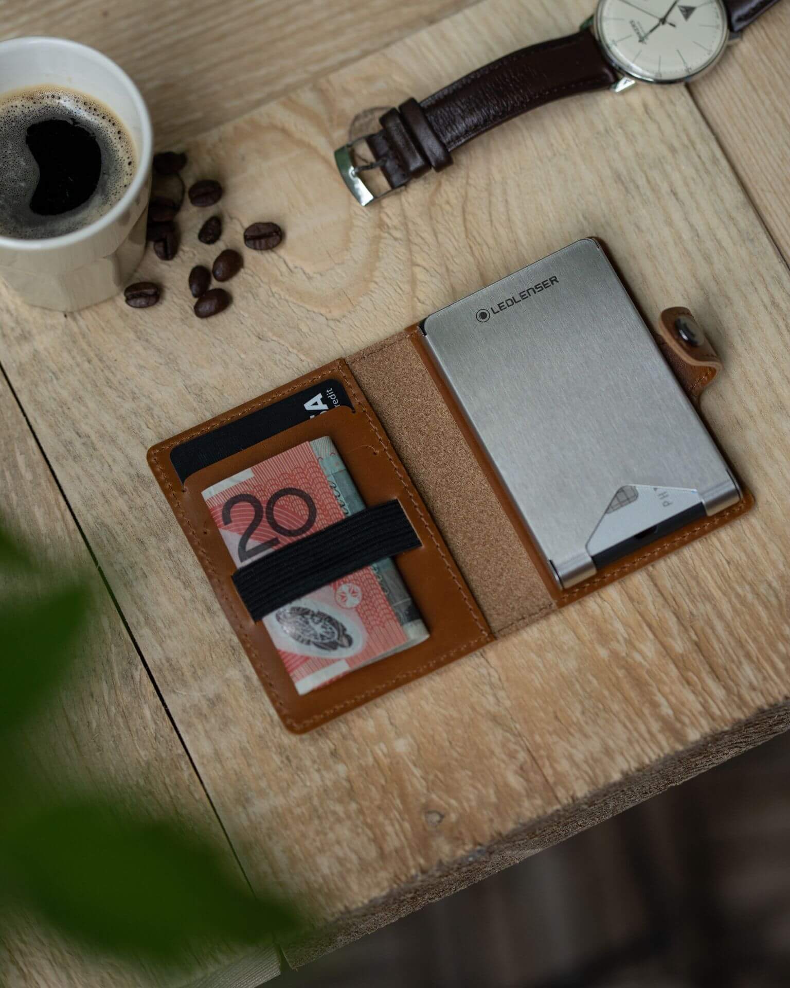 - Integrierter RFID-Blocker unter der Metallabdeckung zum Schutz persönlicher Daten (bis zu sechs Karten)