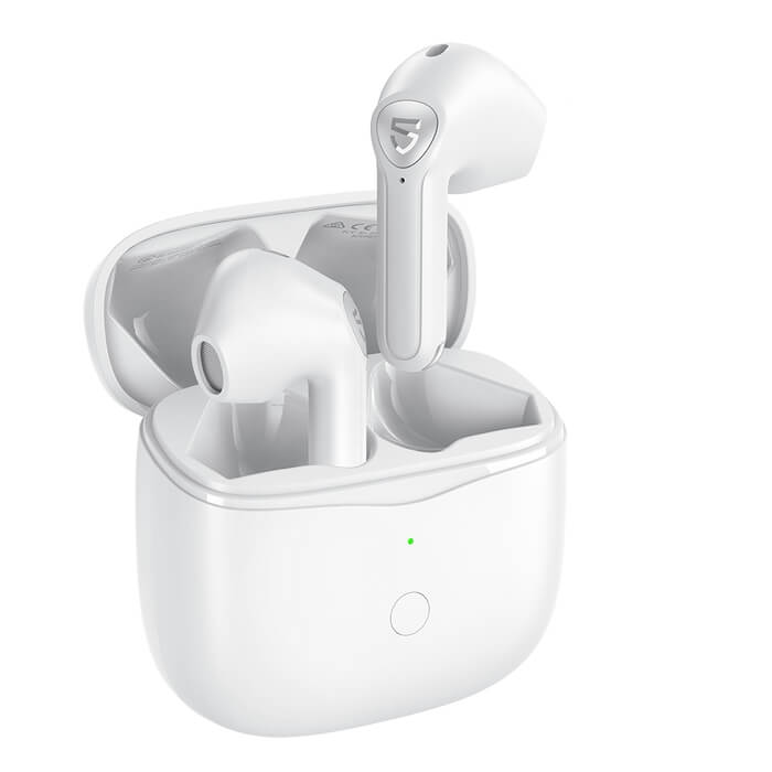 Die chinesischen Earbuds werden von einer Qualcomm QCC3040-Plattform angetrieben, die nicht nur für guten Klang, sondern auch für spezielle Features sorgen soll. Das Testmuster kam in Weiß zu uns, die SoundPEATS Air 3 sind aber auch in Schwarz erhältlich. Die erste Inbetriebnahme ist, wie es sich für Bluetooth-Headsets gehört, sehr simpel. Einfach das Case ausklappen und die Earbuds in die Ohren stecken! Ihr hört dann eine freundliche Stimme „Pairing“ sagen, und mit dem Smartgerät eurer Wahl könnt ihr dann eine Bluetooth-Kopplung durchführen. Ist das erledigt, war’s das auch schon, und ihr dürft voll loslegen. Es gibt ganz AirPods-like keine Silikonspitzen zur Auswahl, keine App, keine Einstellungen – so soll es sein!