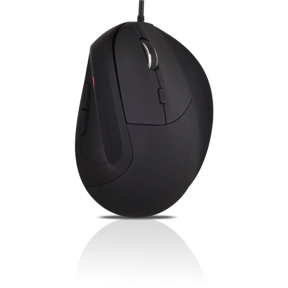Damit kommen wir nun endlich zu den beiden Mäusen und was sofort bei der Manejo, wie auch er Descano in Auge springt, ist die vertikale Ausrichtung. Dadurch legt man die Hand nicht horizontal auf die Maus, sondern kann diese durch die vertikale Drehung (nicht ganz 90 Grad zur Tischplatte) viel natürlicher ergreifen.