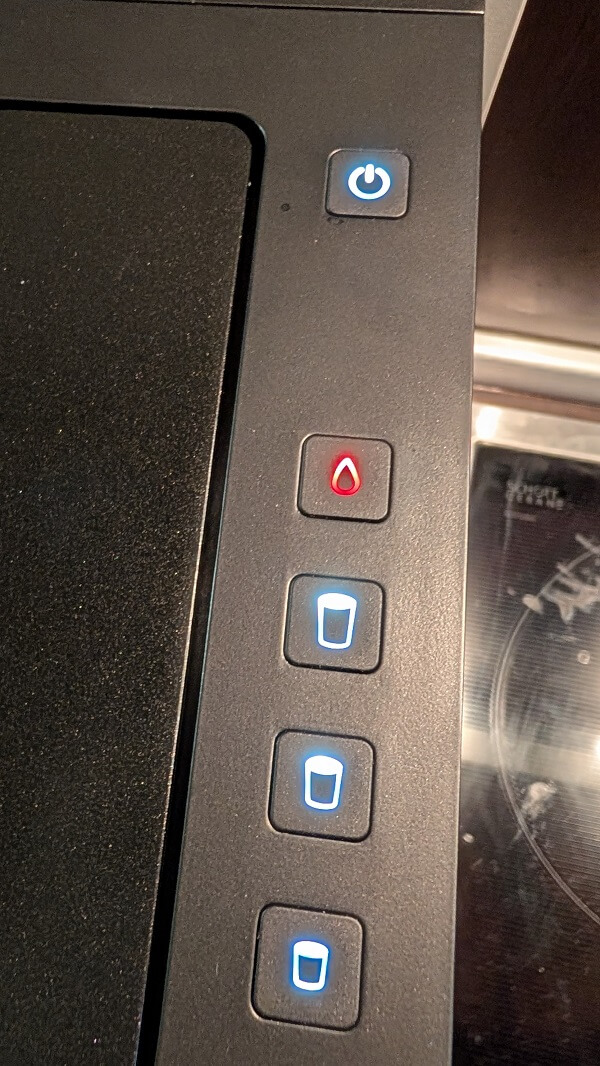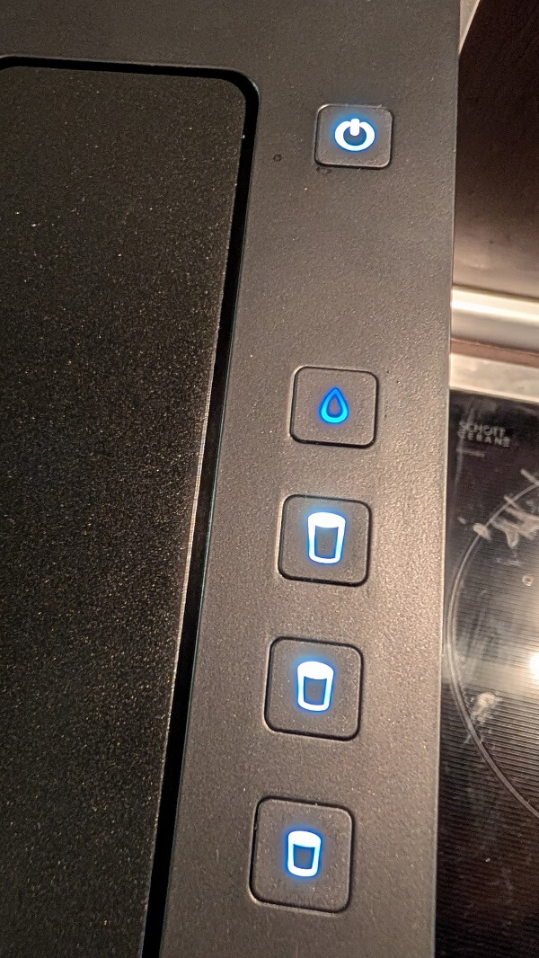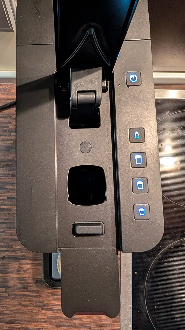 Die Bedienung der Qbo Iconic ist super einfach – ich habe bis jetzt nicht einmal in die Beschreibung blicken müssen. Über beleuchtete Tasten könnt ihr drei Tassengrößen wählen, die sich individuell programmieren lassen. Zudem könnt ihr auch heißes oder kaltes Wasser über die Maschine in euer Tasse fließen lassen. Das ist super praktisch, wenn ihr mal einen Espresso, mal einen Caffè oder sogar einen Caffè Grande möchtet. Der Wassertank fasst 0,9 Liter, was für eine kompakte Maschine ordentlich ist und für etwa drei bis vier Tassen reicht, bevor ihr nachfüllen müsst.